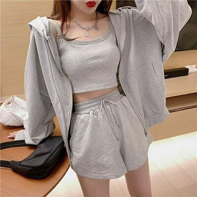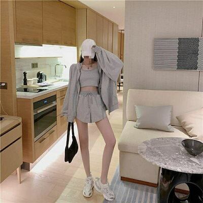 【2枚購入で 2oo円OFF! 】大きいサイズスリーピースおしゃれカジュアルセット日焼け防止オーバーコートです女です学生ですゆとりです半ズボンです
