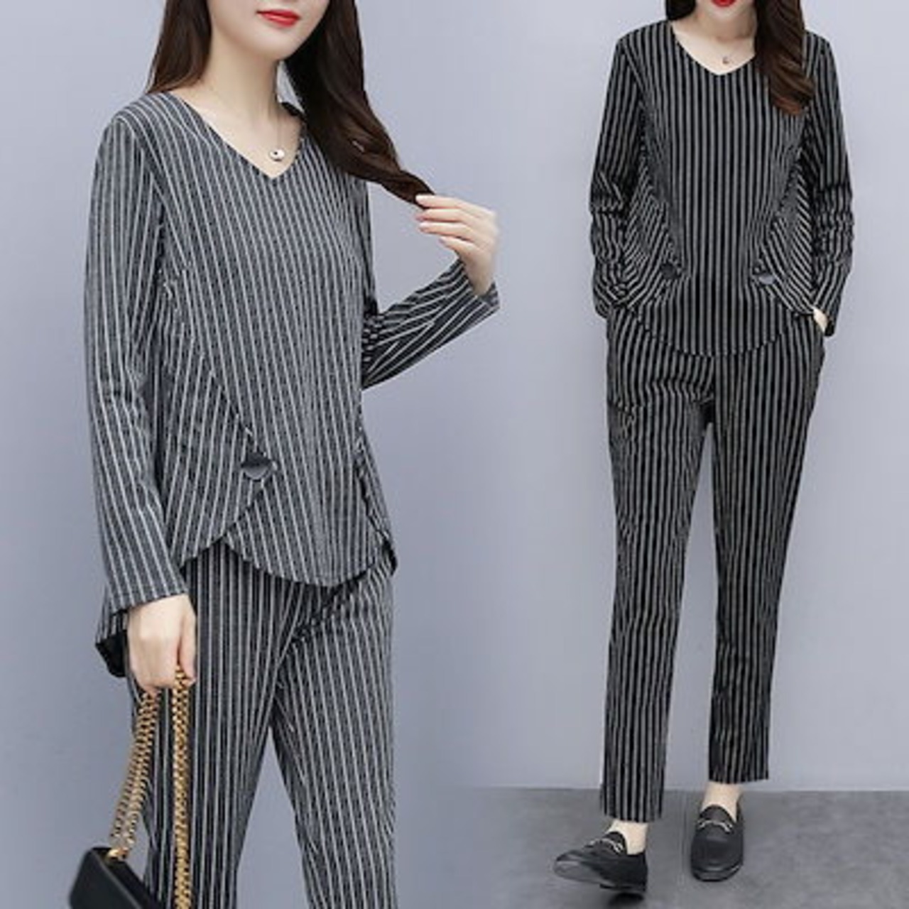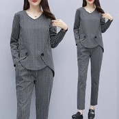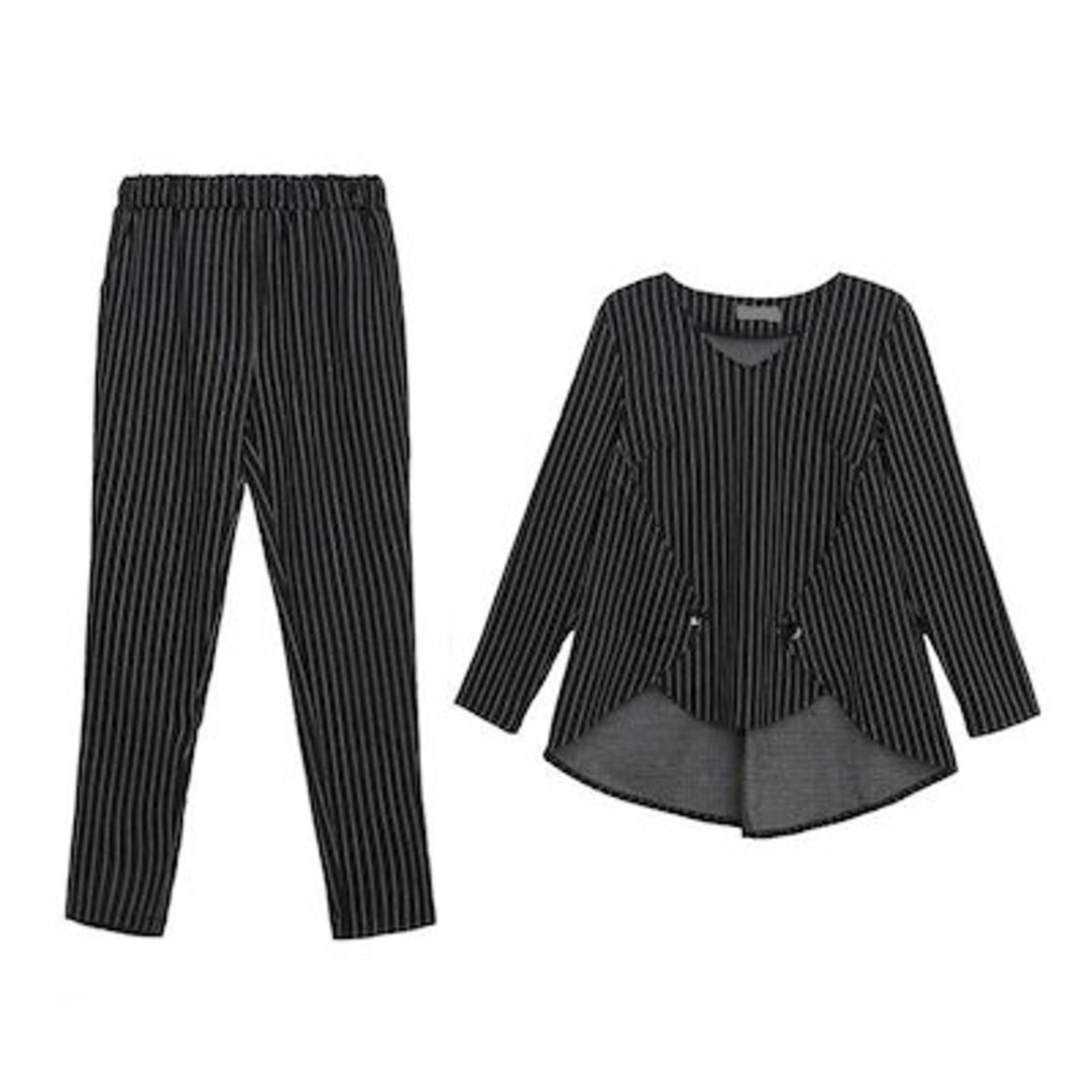 【2枚購入で 2oo円OFF! 】大きいサイズ女装です200ゴールドセット太った妹上着ですゆとりです腹隠しをする西洋風ですカジュアルズボンです縞ですツーピースです
