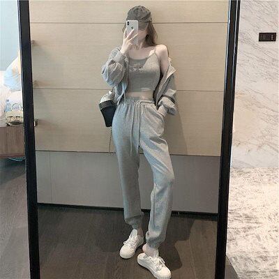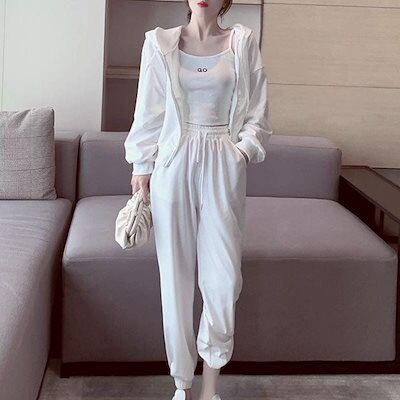 【2枚購入で 2oo円OFF! 】フード付きアウター+ズボン 3点セットレディース 春秋 おしゃれ 気質 セット 通勤 韓国ファッション セットアップ