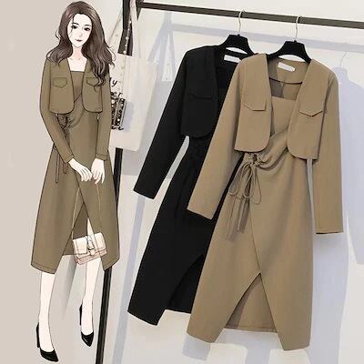【2枚購入で 2oo円OFF! 】ワンピース+アウター 2点セットレディース 春秋 おしゃれ 気質 セット 通勤 韓国ファッション セットアップ