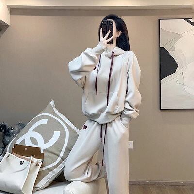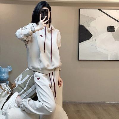 【2枚購入で 2oo円OFF! 】フード付き スウェット+パンツ 2点セットレディース 春秋 カジュアル スウェット ズボン 通勤 韓国ファッション セットアップ