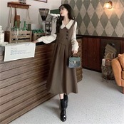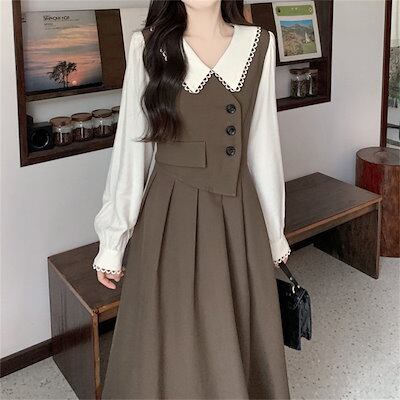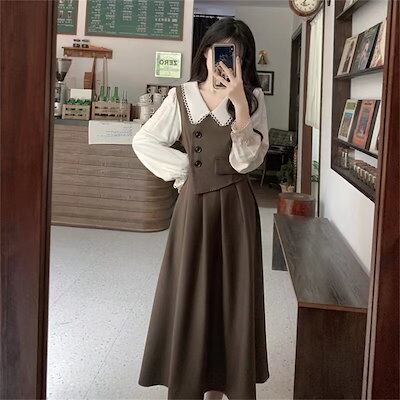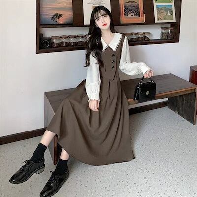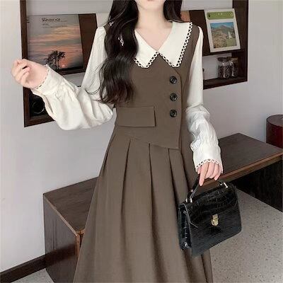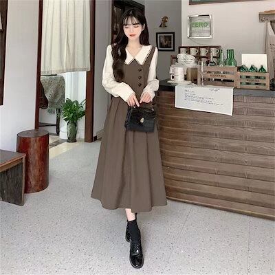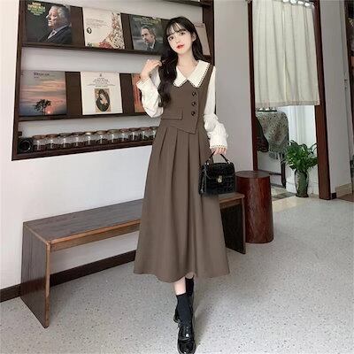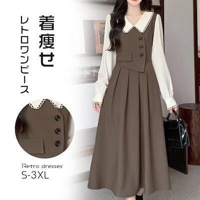 レトロ ワンピース レディース レトロワンピース 女子ワンピ 長袖 春 秋 重ね着風 日系女子中高生 クラシカル カワイイ 通勤 通学 ファッション 着痩せ 文芸 女子高校生