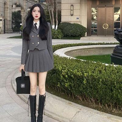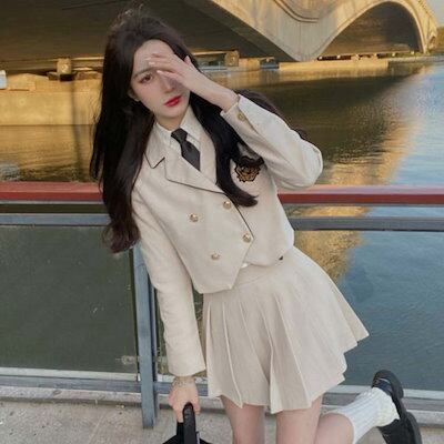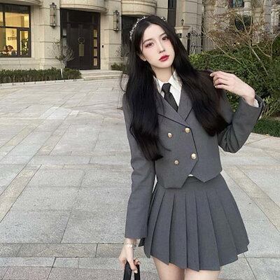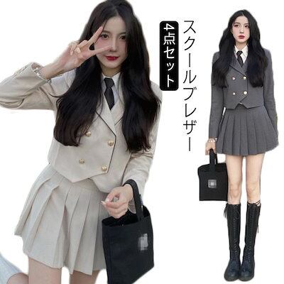 プリーツスカート ジャケット 4点セット 秋 長袖 フォーマル 洗濯機OK ブレザー ワッペン付き 通学 女子高生 ネクタイ スクールブレザー JK制服 高校生 学生 中学 シャツ 卒業式 入学式 制
