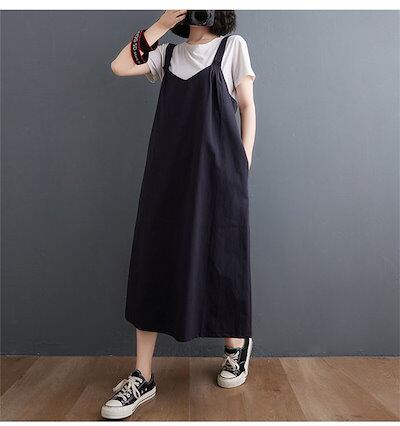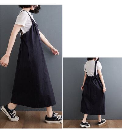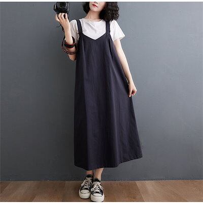 【マラソン限定P8倍 即納】ジャンパースカート ロング 夏 ワンピース レディース ロングワンピース 大人 ノースリーブ キャミソール きれいめ オフィス 夏ワンピ お洒落 体型カバー 無地 カジ
