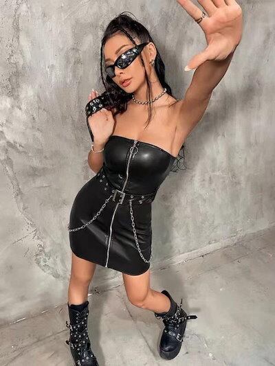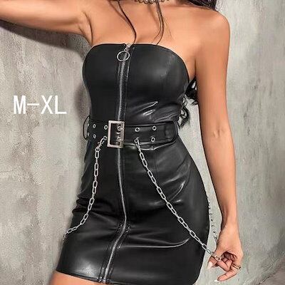 「超セクシー」cosplay クラブ ギャル スカート セクシーな皮のスカート 尻を包む ファスナー チェーンスカート 舞台装 cos服 ストリートビート ダンスを 大人 女