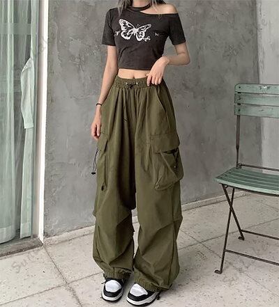 カーゴパンツ レディース ミリタリーパンツ カーゴ レディースパンツ レディース テーパードパンツ ダンス衣装 ウエストゴム 美シルエット