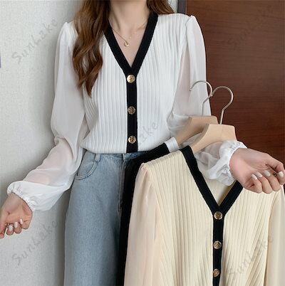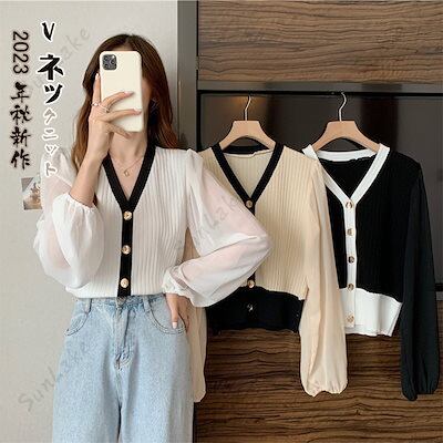 24H限定!2024年春秋新作 Vネックニットゆるニット気質可愛い/ /インナー/ニットセーター 長袖 ニットセーター レディース 修身 着痩せ ニット リブニットセーター お洒落 プルオ
