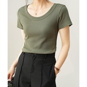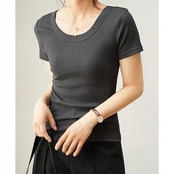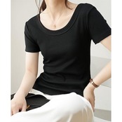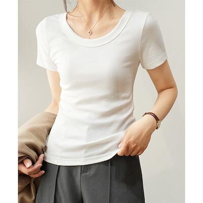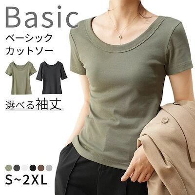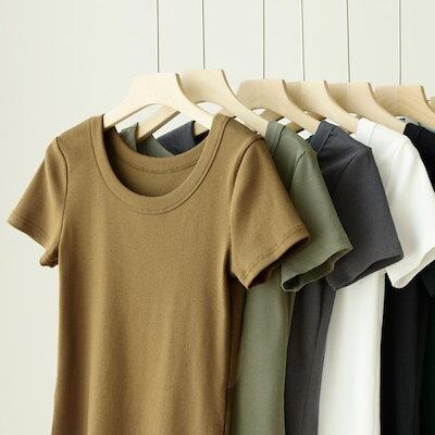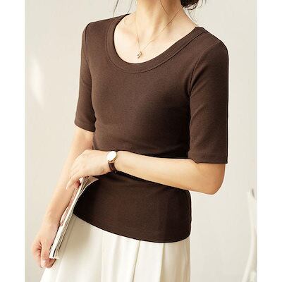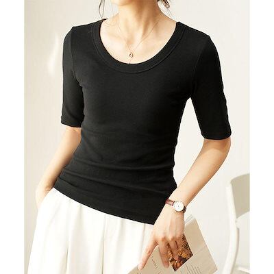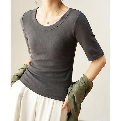まで スイモク 半袖 5分袖 Tシャツ レディース トップス カットソー リブ デイリー 肌触りの良い素材 大きいサイズ きれいめ ナチュラル 水沐良品