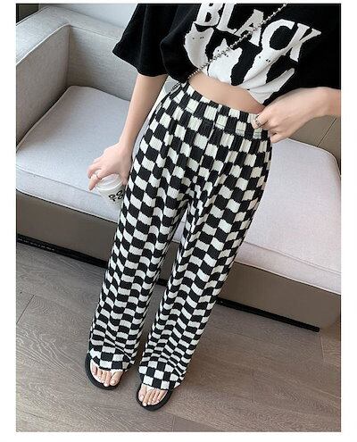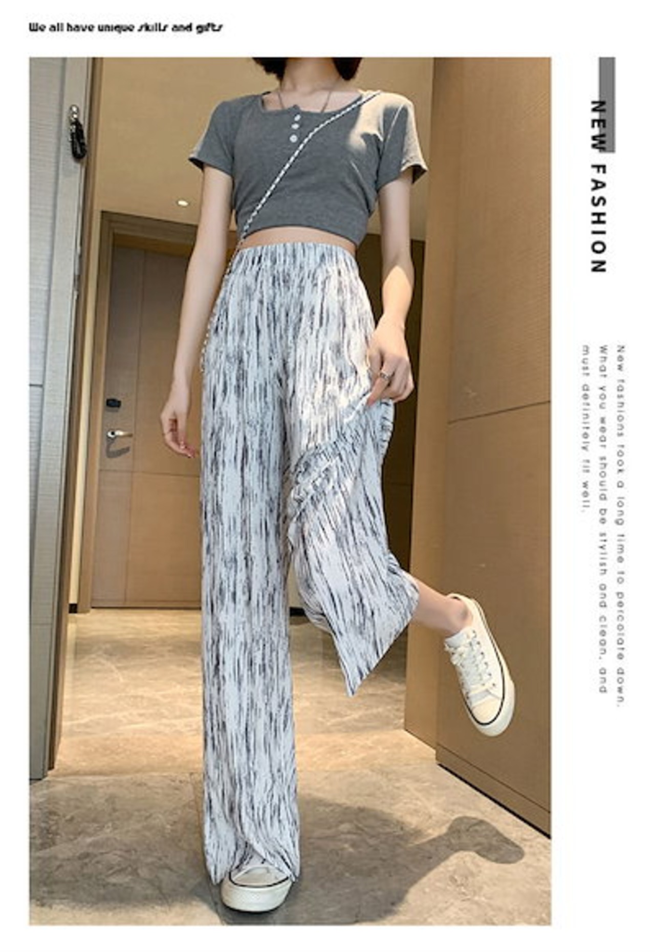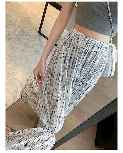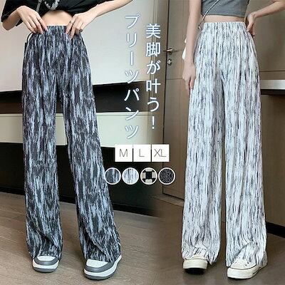 ワイドパンツ プリーツパンツ レディース 夏 涼しい ロングパンツ 総柄 チェック柄 ヒョウ柄 バギーパンツ イージーパンツ ウエストゴム ハイウエスト ゆったり リラックス リゾート ビーチ 海 爽