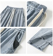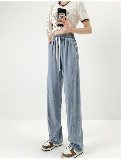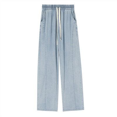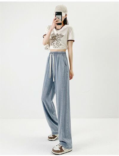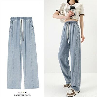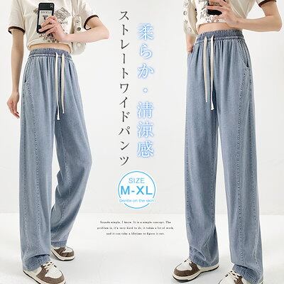 デニムワイドパンツ 清涼感 夏 ワイドパンツ レディース ジーンズ ボトムス 冷感素材 リラックス ウエストゴム ジーパン 薄手 長ズボン バギーパンツ イージーパンツ 涼しい 爽やか ロングパンツ