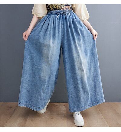 デニムパンツ ワイドパンツ レディース ガウチョパンツ デニム ゆったり ボトムス ジーパン チノパン バギー イージーパンツ 柔らか 森ガール デニム ズボン ウエストゴム 大きいサイズ 体型カバー