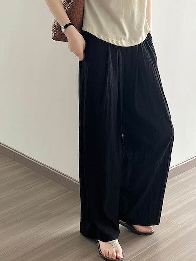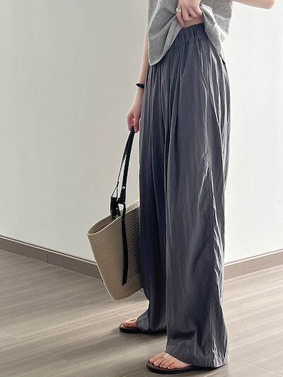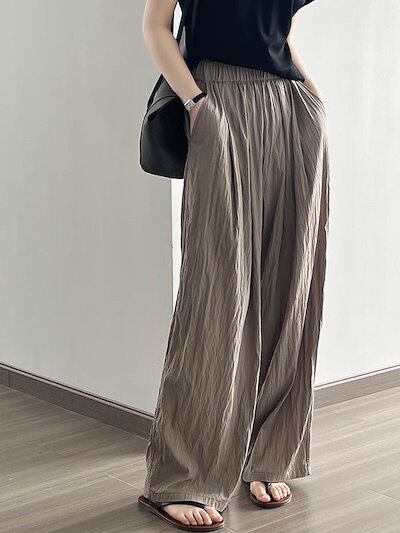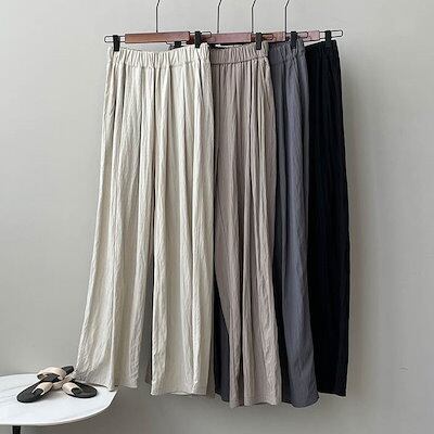 ワイドパンツ 夏 ロングパンツ レディース イージーパンツ パンツ ワイド 無地 ロング丈 ガウチョ 涼しい UV対策 薄手 ウエストゴム ズボン ゆったり 体型カバー カジュアル きれいめ 着痩せ