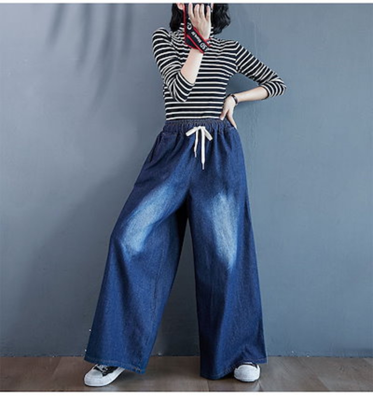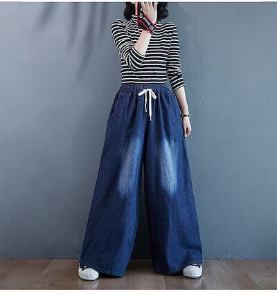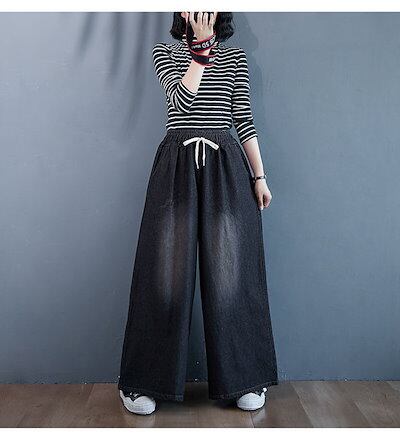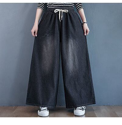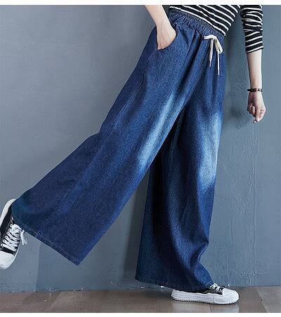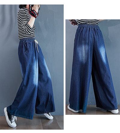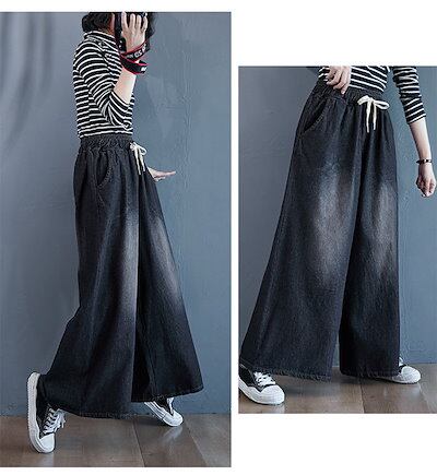 ワイドパンツ デニム レディース デニムパンツ ワイド イージーパンツ ジーンズ 大きいサイズ ゆったり 体型カバー ボトムス チノパン デニムワイドパンツ 秋 カジュアル ズボン ウエストゴム 大