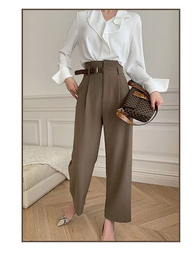 タックワイドパンツ レディース ボトムス パンツ ハイウエスト ワイドパンツ レディース 秋 ウエストタック ゆったり ズボン カジュアル 通勤 仕事 オフィス 事務所 OL 体型カバー 楽ちん フ