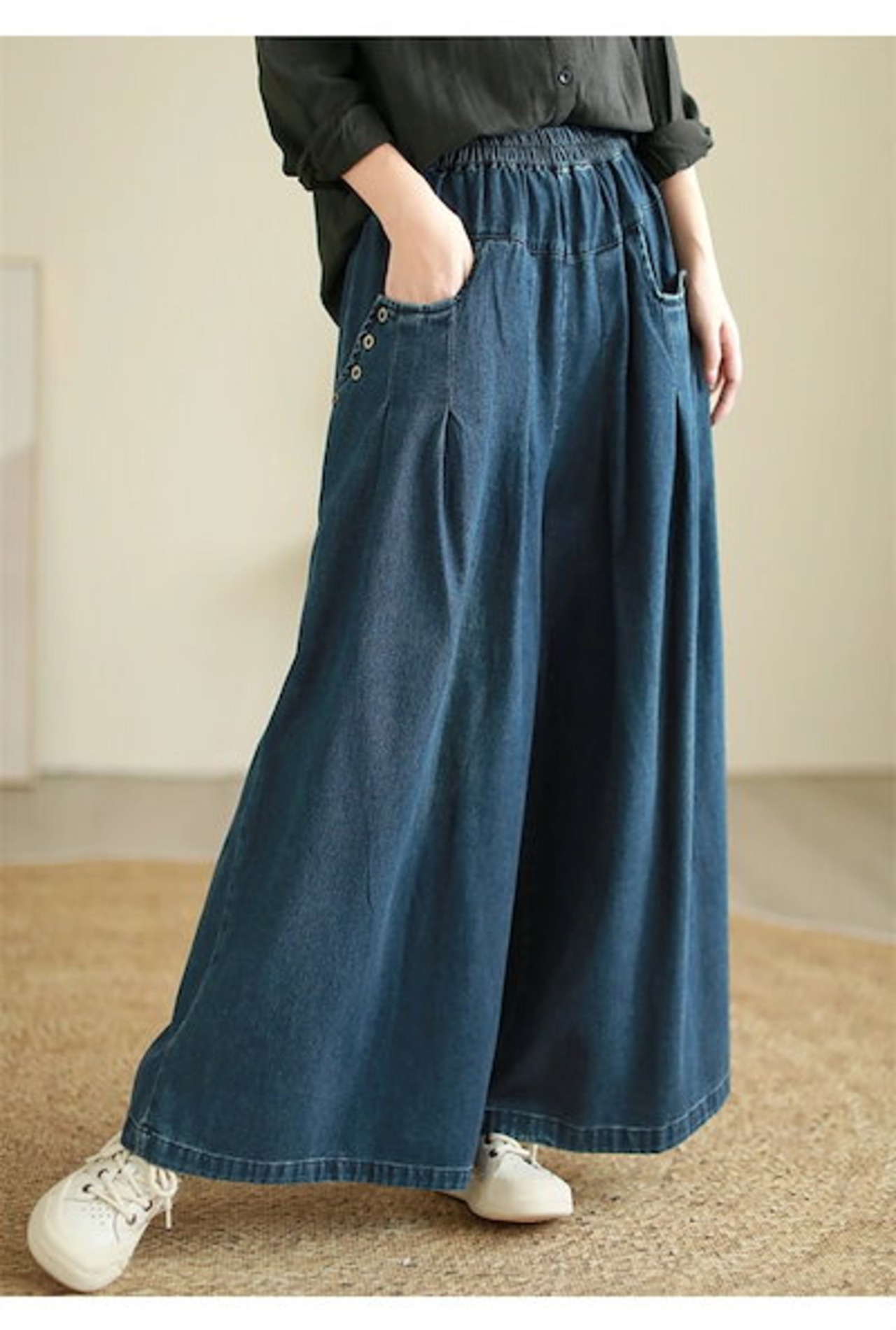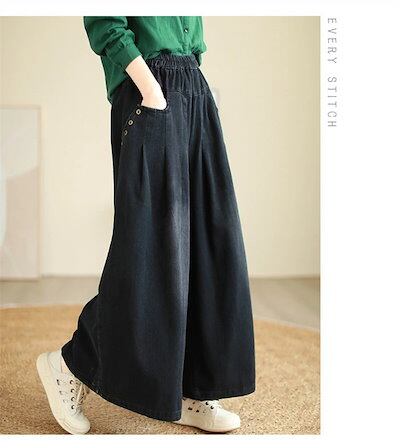 デニム ワイドパンツ デニムパンツ レディース ガウチョパンツ ジーンズ ゆったり ボトムス ジーパン 大きいサイズ バギーパンツ イージー 柔らか デニム 森ガール ズボン ウエストゴム 体型カバー