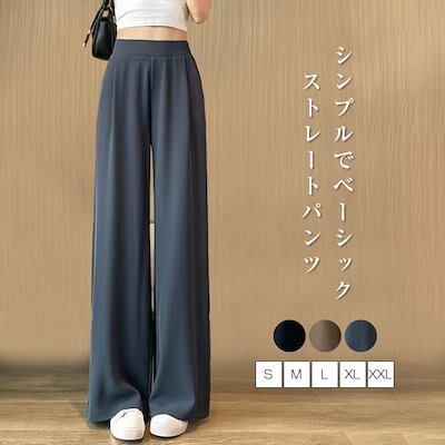 ストレートパンツ レディース スーツパンツ ロング イージーパンツ 無地 ワイドパンツ ウエストゴム ボトムス フォーマル ビジネス オフィス 通勤 カジュアル シンプル 体型カバー 着回し おしゃれ