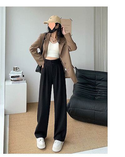 ストレートパンツ レディース ワイドパンツ スーツパンツ ロングパンツ 無地 ウエストゴム 長ズボン ハイウエスト 落ち感 カジュアル ボトムス シンプル オフィス 体型カバー おしゃれ 着回し 通