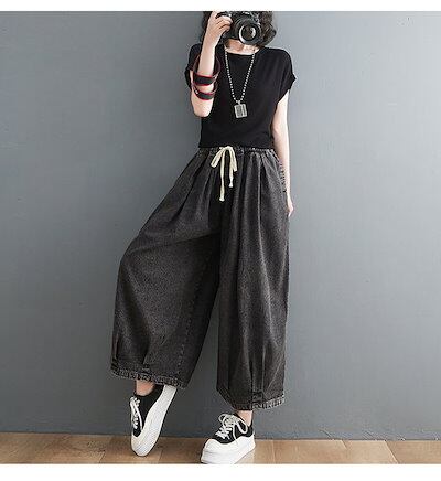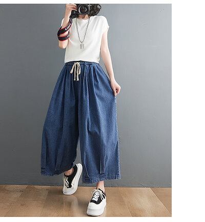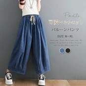 デニムワイドパンツ レディース バルーンパンツ デニム コクーンパンツ デニム ボトムス パンツ ジーンズ 大人カジュアル 春夏 ナチュラル 森ガール ズボン ウエストゴム 大きいサイズ ゆったり