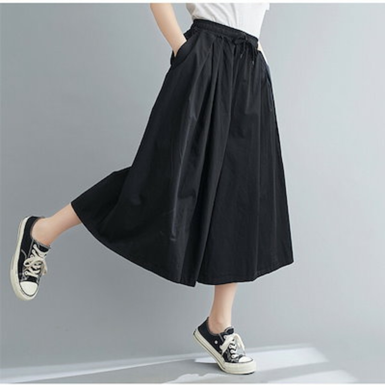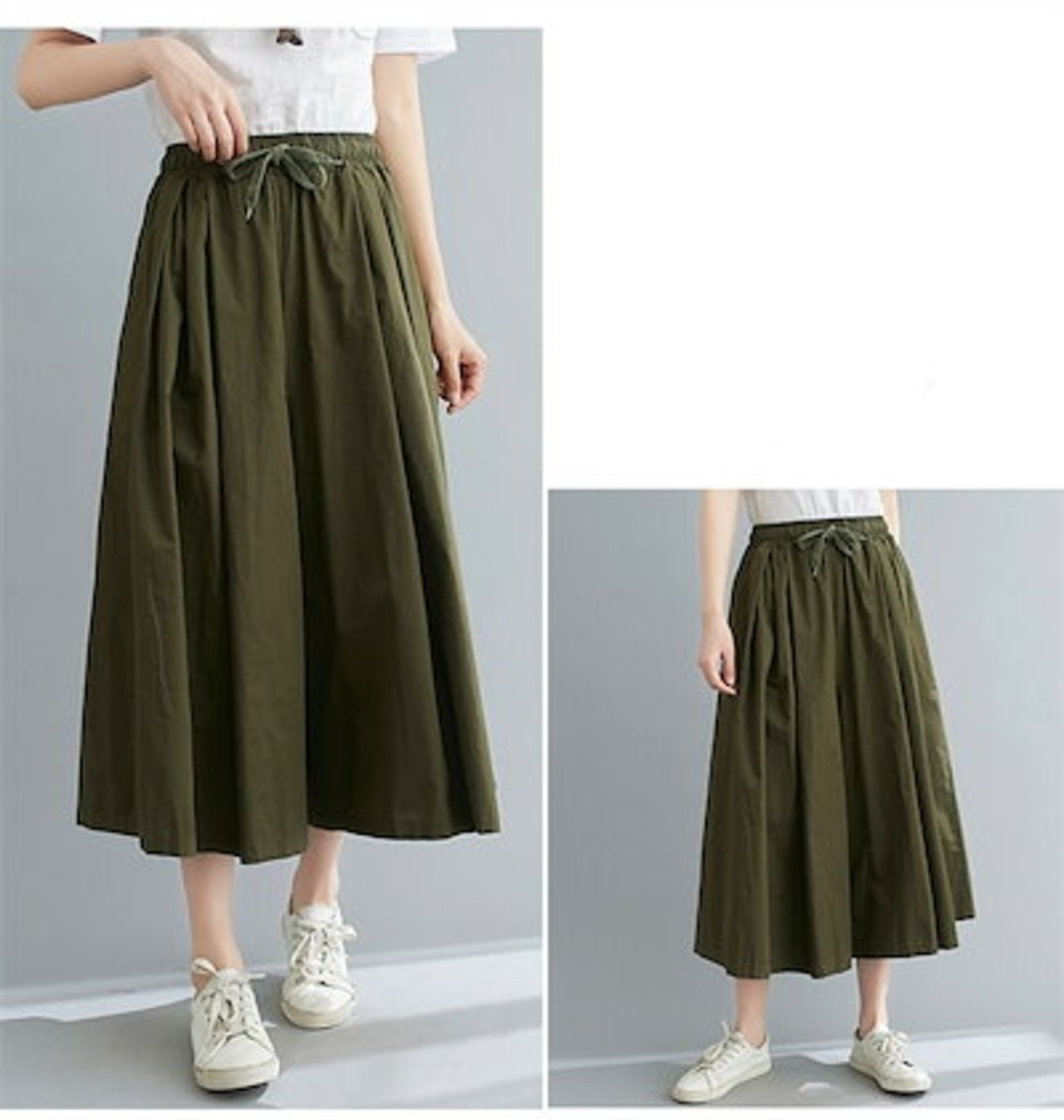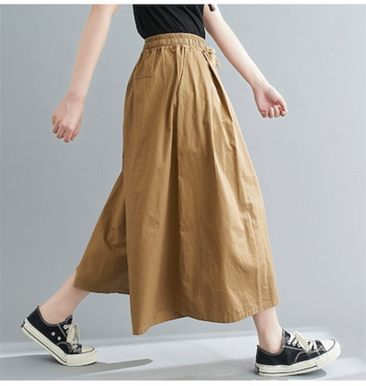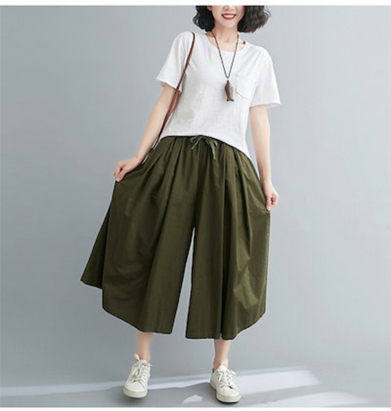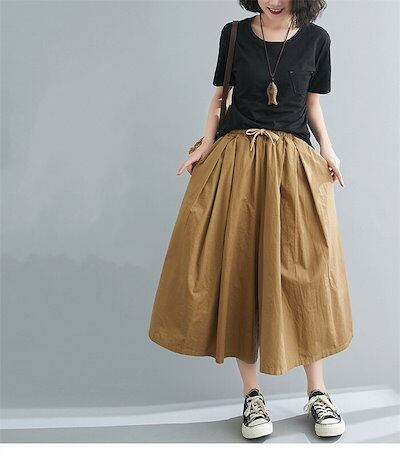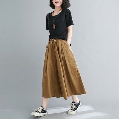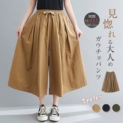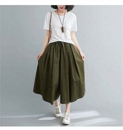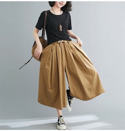 ワイドパンツ 夏 ガウチョパンツ レディース パンツ ワイド 綿混 九分丈 ウエストゴム ズボン ワイドルーズ 大きいサイズ 体型カバー ゆったり カジュアル きれいめ 薄手 着痩せ ゆる 可愛い 森