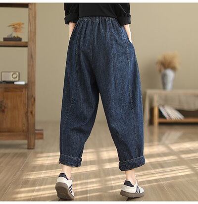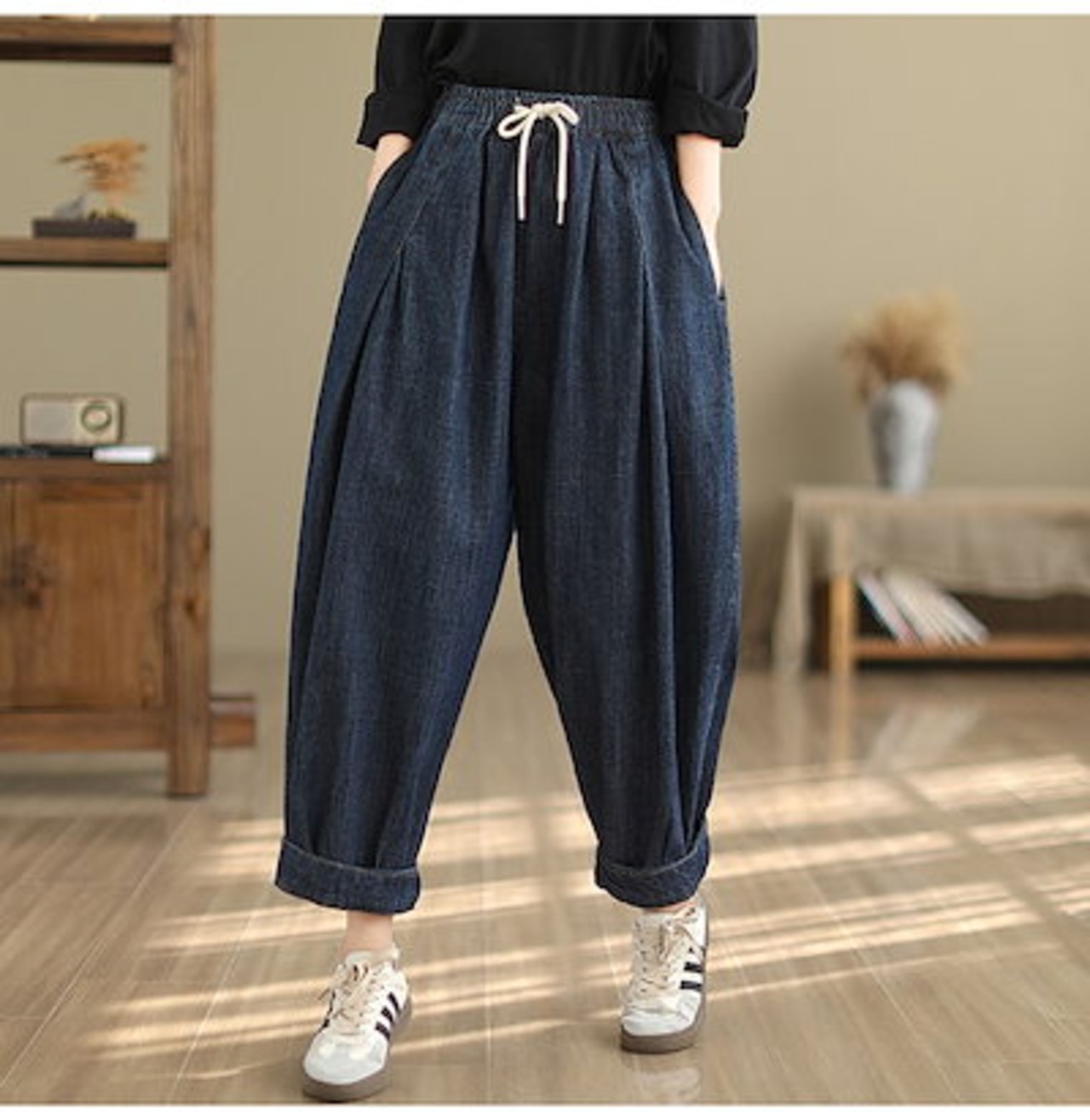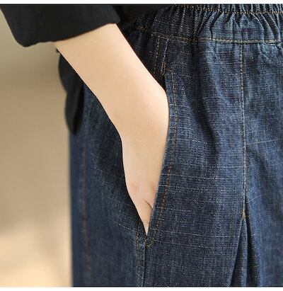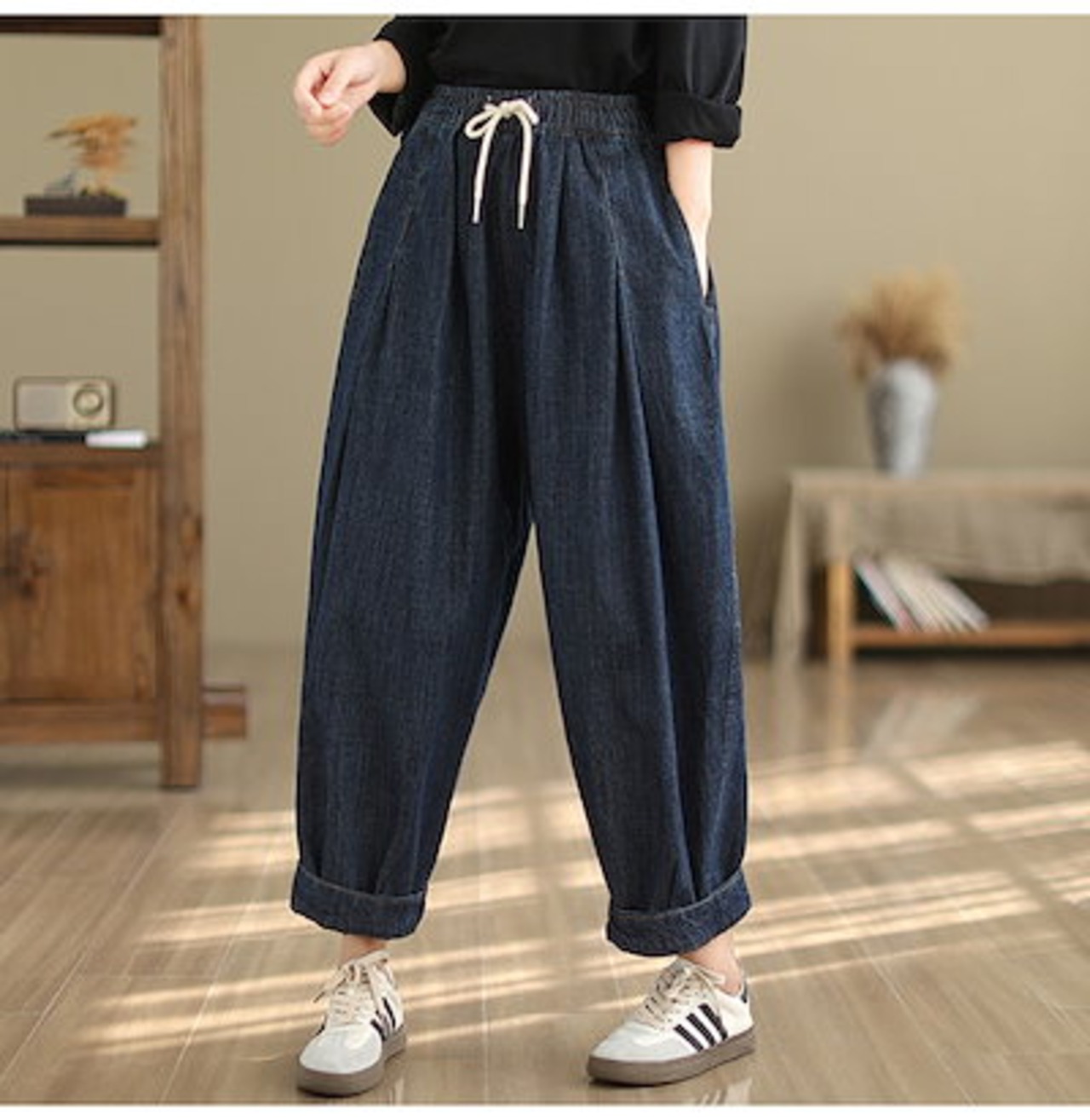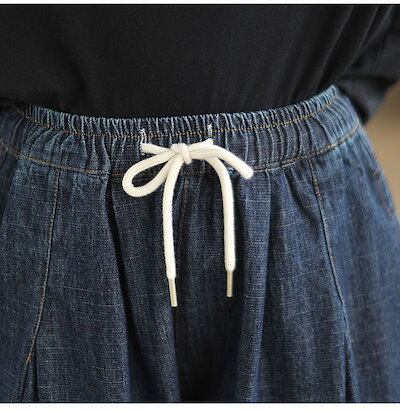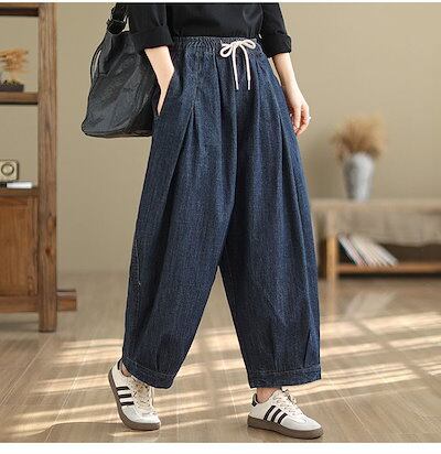 デニム ワイドパンツ レディース バルーンパンツ デニム クロップド コクーンパンツ デニム ボトムス パンツ ジーンズ 大人カジュアル 春夏 ナチュラル 森ガール ズボン ウエストゴム 大きいサイ