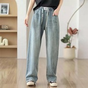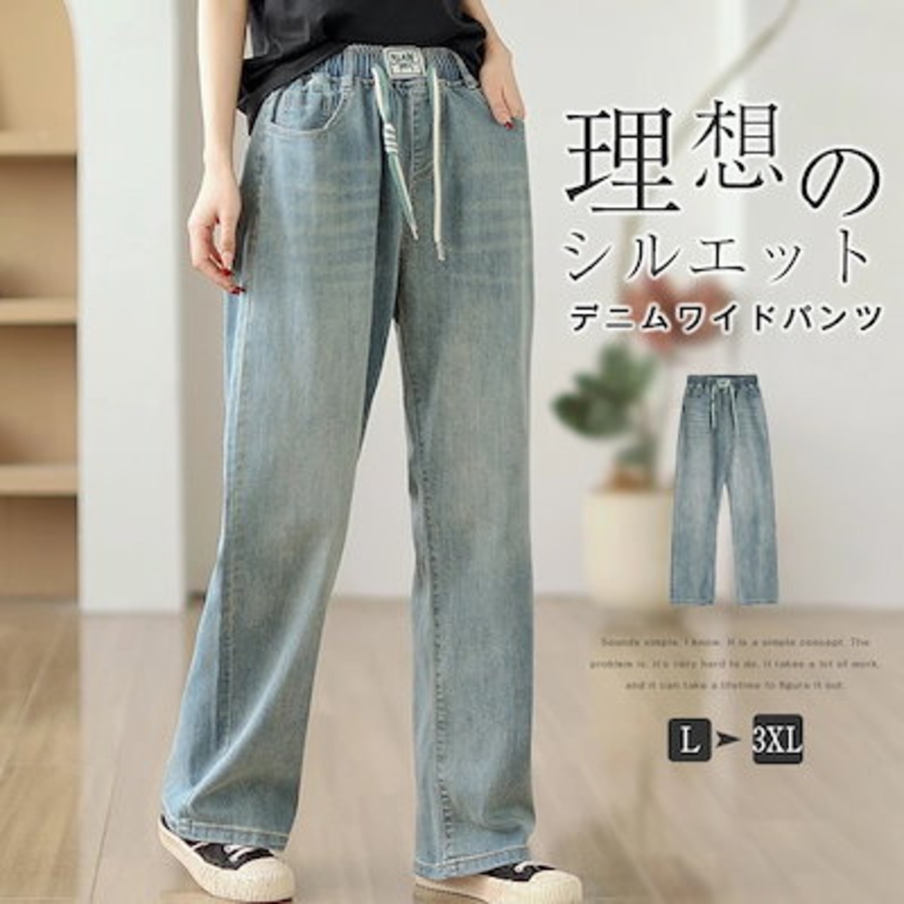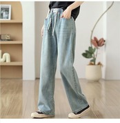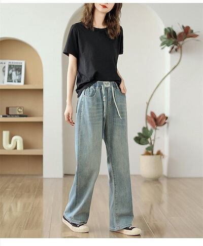 デニムパンツ 夏 レディース デニムワイドパンツ 大きいサイズ ゆったり ジーンズ ストレートワイドパンツ 柔らか ボトムス ジーパン 美脚 春夏秋 カジュアル ウエストゴム 体型カバー 着回し 大人