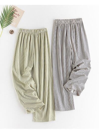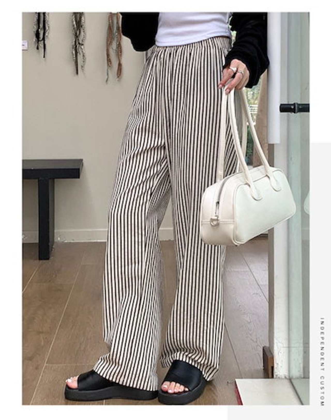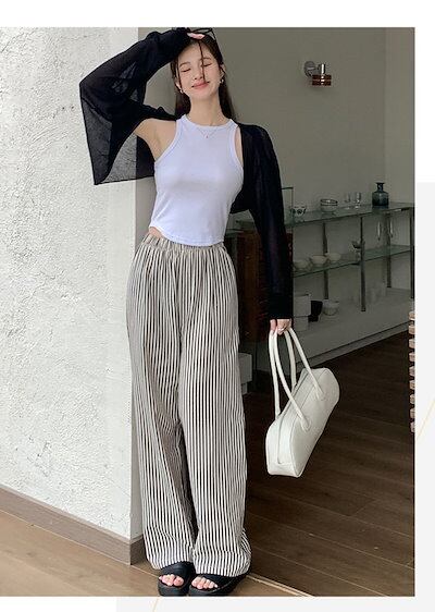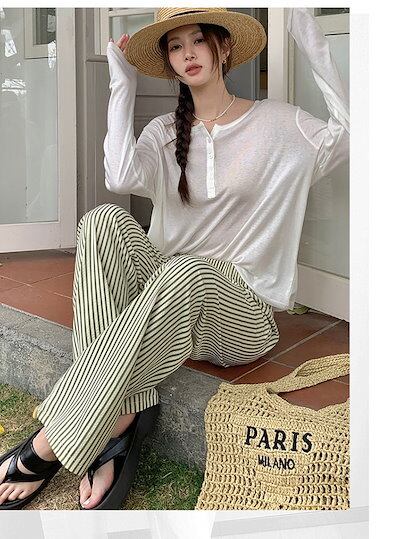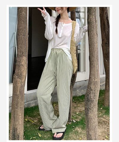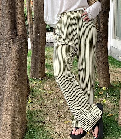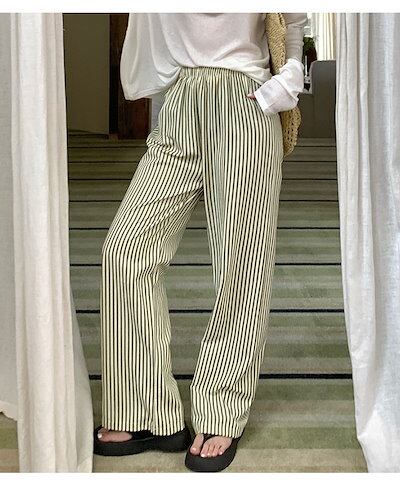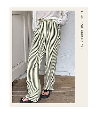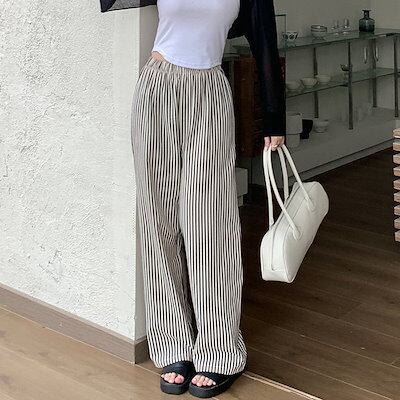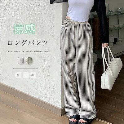 ワイドパンツ 夏 レディース ロングパンツ ストライプ パンツ 涼感 ワイド パンツ ボトムス イージーパンツ ズボン 長ズボン ウエストゴム カジュアル 涼しい 爽やか きれいめ リラ