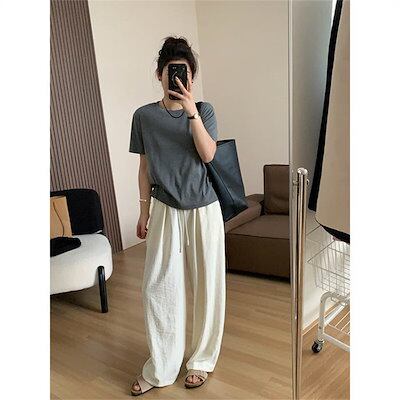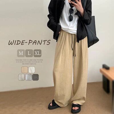 ワイドパンツ 夏 ロングパンツ レディース イージーパンツ 無地 ワイド パンツ ロング丈 ガウチョ 涼しい UV対策 薄手 ウエストゴム ズボン ゆったり 体型カバー カジュアル きれいめ 着痩せ