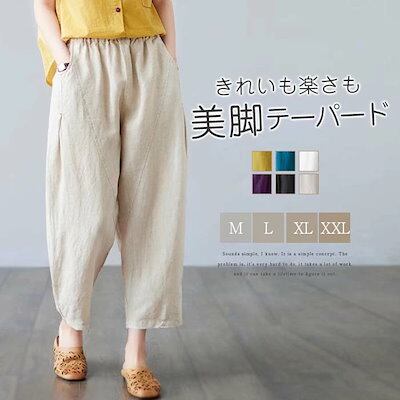 ワイドパンツ レディース きれいめ パンツ 春 夏テーパードパンツ チノパン ワイドパンツ ハイウエスト ボトムス クロップド 長ズボン ロールアップ ウエストゴム 春 夏 無地 大きいサイズ ゆった