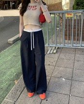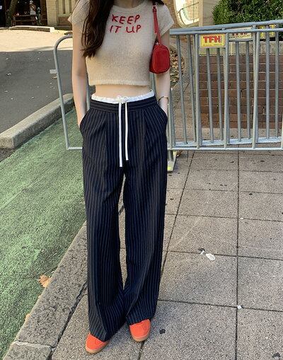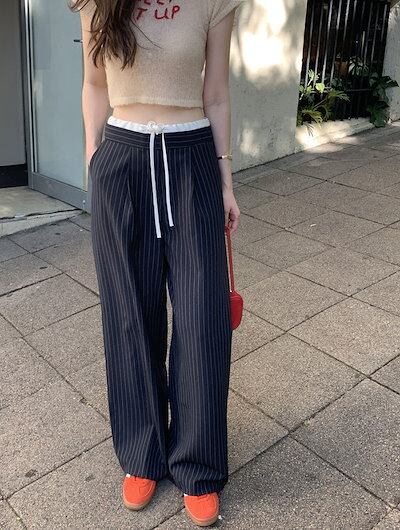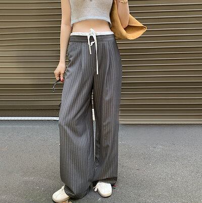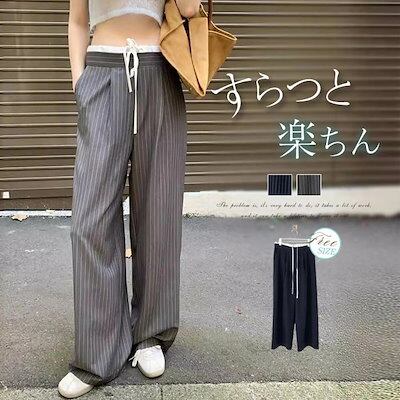 ストライプ レディース 夏 ワイドパンツ ロングパンツ ストライプパンツ 涼感 ワイド パンツ ボトムス イージーパンツ ズボン 長ズボン カジュアル 涼しい 爽やか きれいめ リラックス 薄手 トレ