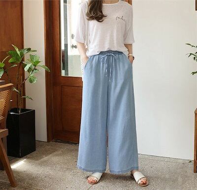 デニムパンツ 涼しい レディース 薄手 デニムパンツ 夏 ワイドパンツ 大きいサイズ 接触冷感 デニム ワイドパンツ ボトムス リラックスパンツ ゆったり 体型カバー ハイウエスト 大人 楽ちん ウ