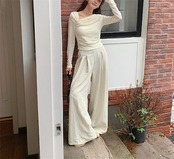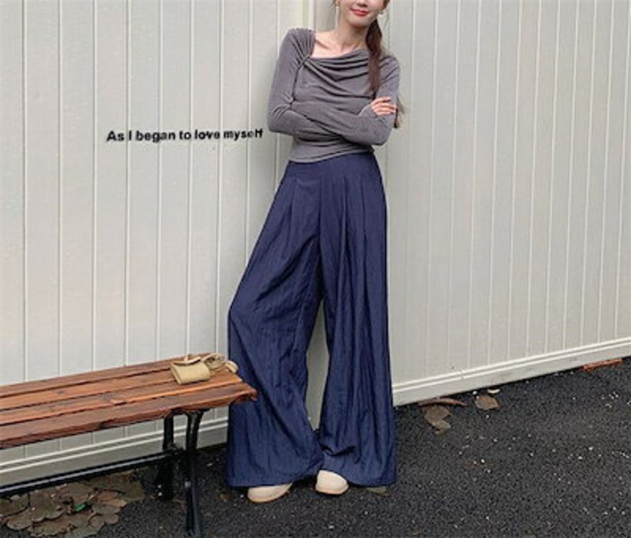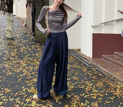 ワイドパンツ レディース タックワイドパンツ 春秋 パンツ ロングパンツ ボトムス 綿混 通勤 リラックス ウエストゴム バギーパンツ イージーパンツ ゆったり カジュアル 大人 上品 オフィス 事