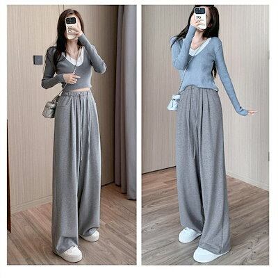 ワイドパンツ スウェットパンツ 春秋 レディース ロングパンツ 春秋 ウエストゴム 美脚 リラックス カジュアル ボトムス 体型カバー バギーパンツ イージーパンツ ゆったり カジュアル