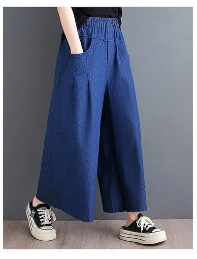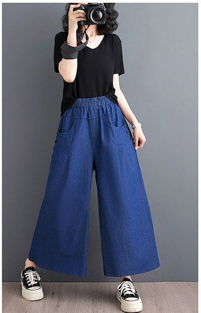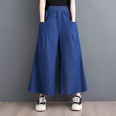 デニムパンツ レディース 秋 薄手 ワイドパンツ 大きいサイズ デニム ボトムス リラックスパンツ ゆったり 体型カバー ストレッチデニム 大人 ウエストゴム ポケット付き 低身長 柔らか 着?せ 美