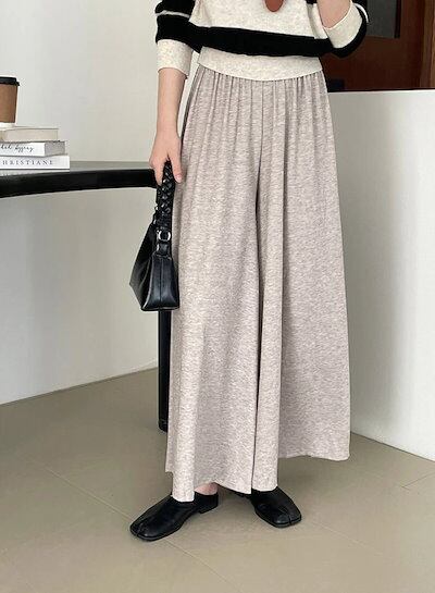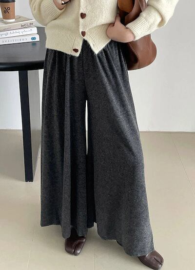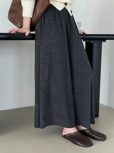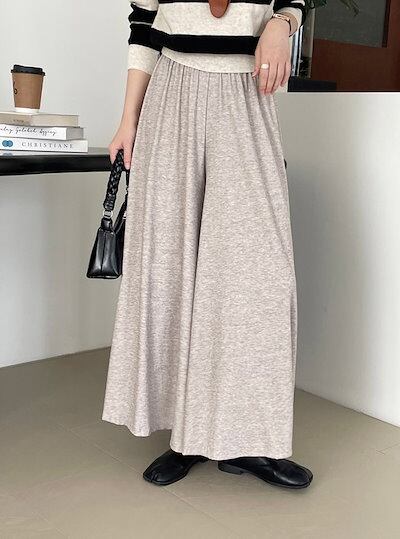 キュロットスカート ワイドパンツ レディース フレア 秋 冬 ニット パンツ ロングパンツ ボトムス リラックス 無地 オフィス フォーマル ゆったり 体型カバー フリーサイズ 美脚 キレイめ 落ち感