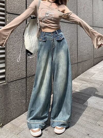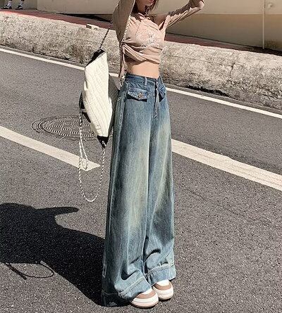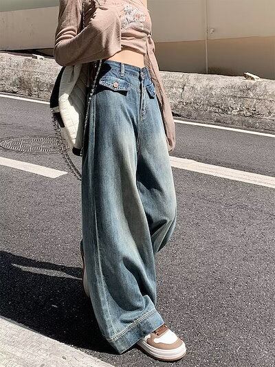 デニムワイドパンツ レディース ワイドパンツ デニムパンツ フレアパンツ ジーンズ ジーパン ロングパンツ 大きいサイズ ゆったり ハイウエスト バギーパンツ ボトムス ロング丈 ズボン カジュアル