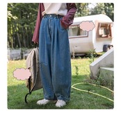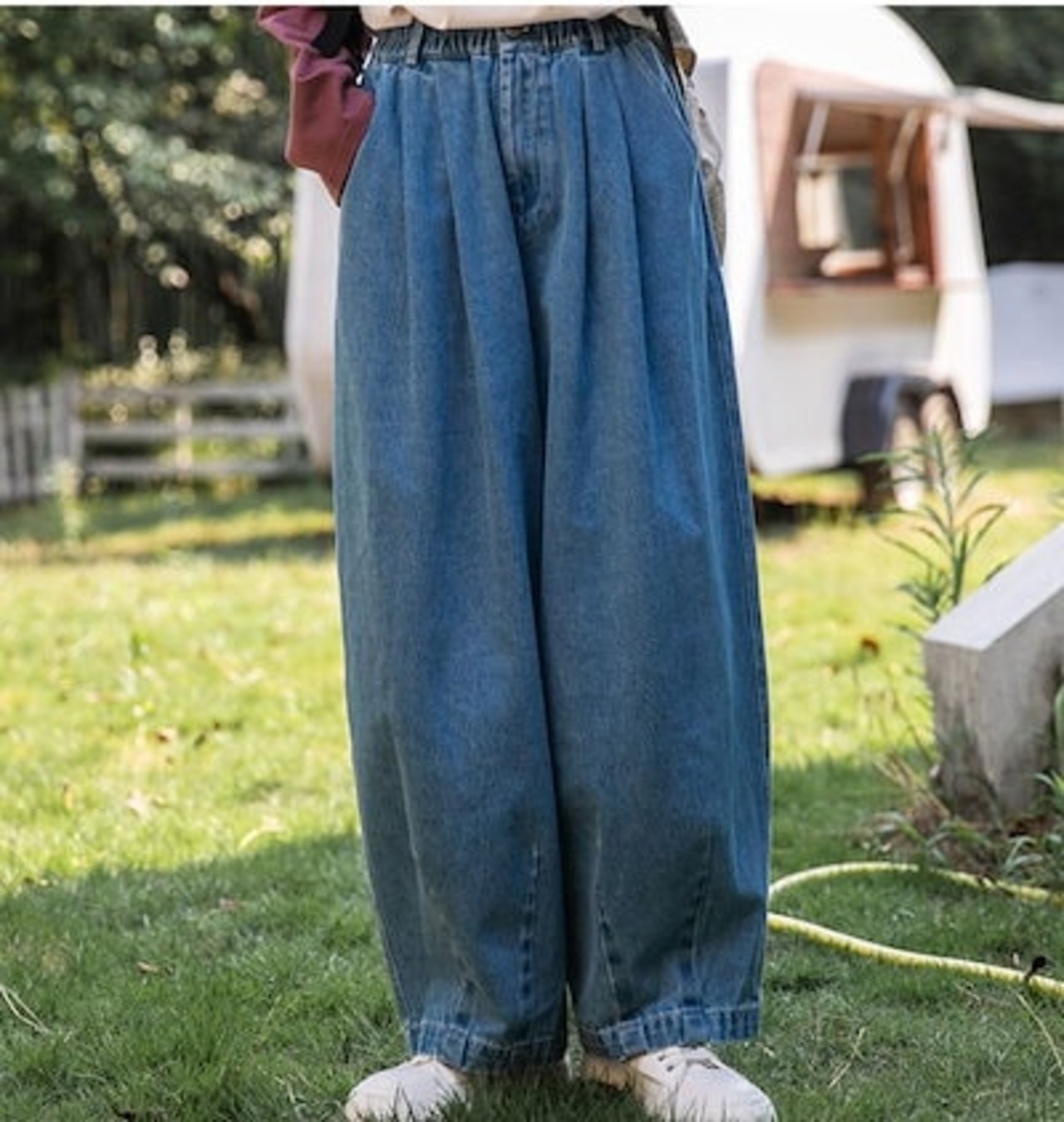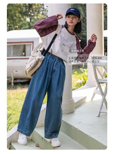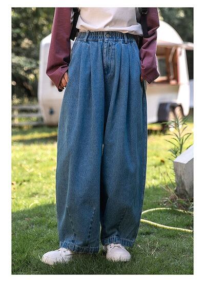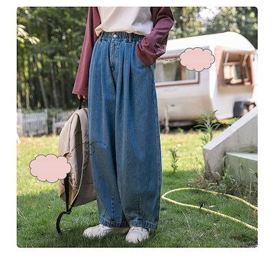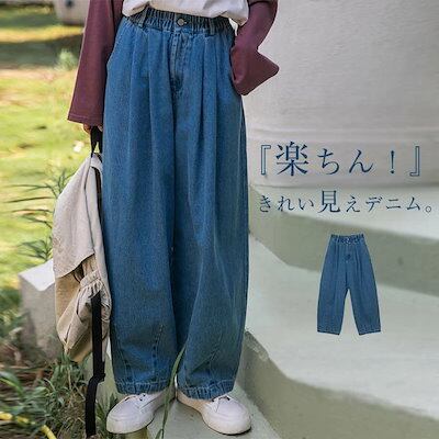 デニムパンツ レディース 秋 パンツ 綿 ワイドパンツ デニム ジーンズ ジーパン ボトムス ゆる リラックスパンツ ゆったり 体型カバー 大人 かわいい ウエストゴム 柔らか 着?せ 美脚 おしゃ