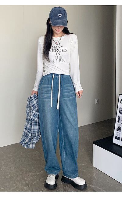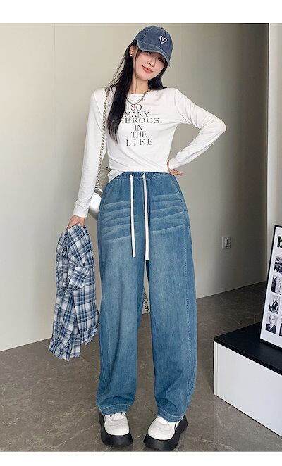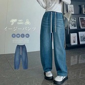 デニムワイドパンツ レディース デニム ワイド パンツ 春秋 ジーンズ ロングパンツ ボトムス イージーパンツ ガウチョ リラックス ウエストゴム ジーパン バギーパンツ ハイウエスト ゆったり おし