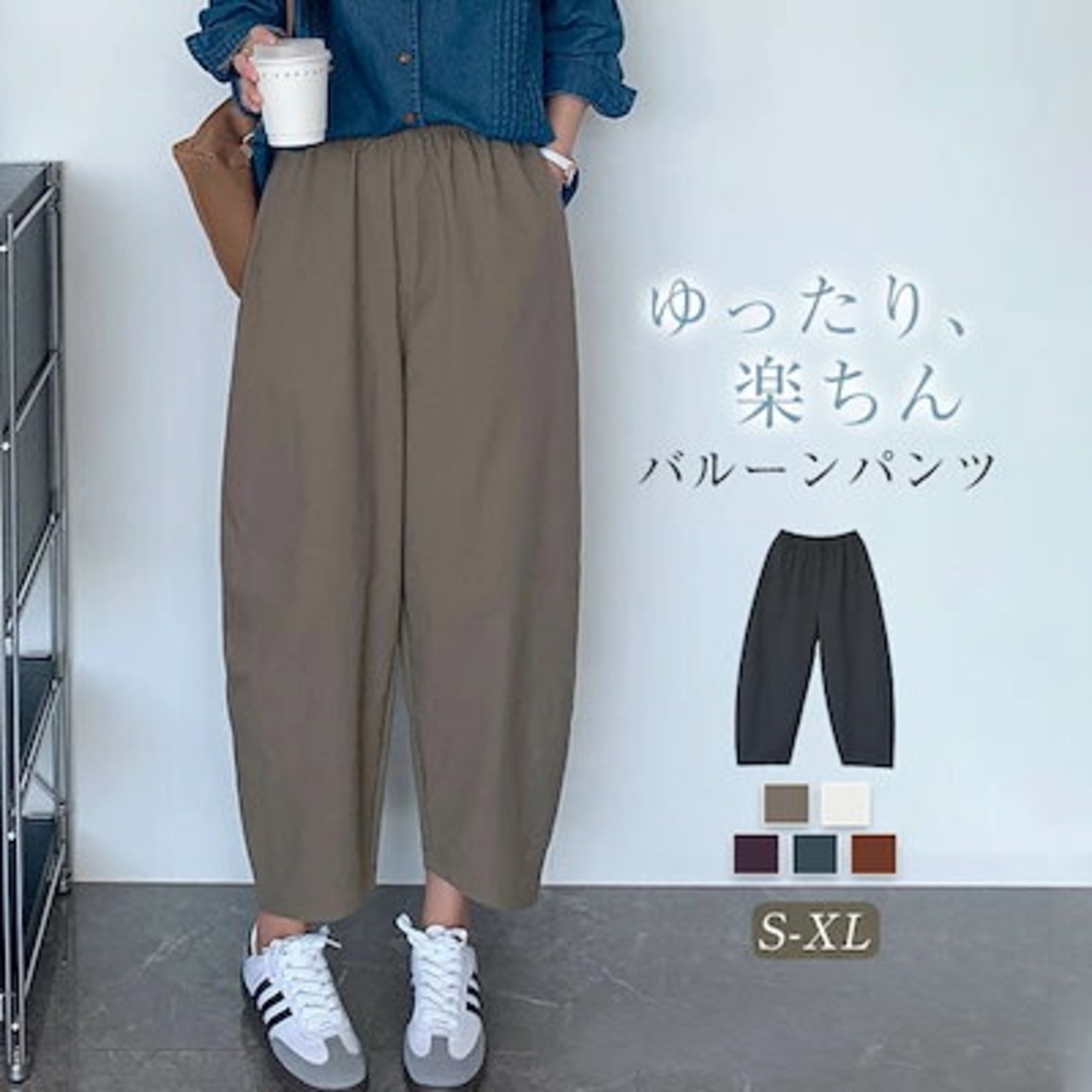 バルーンパンツ レディース パンツ ワイドパンツ サーカスパンツ 春秋 九分丈 ガウチョパンツ ボトムス ウエストゴム イージーパンツ 大きいサイズ リッラクスパンツ 無地 シンプル カジュアル ゆっ