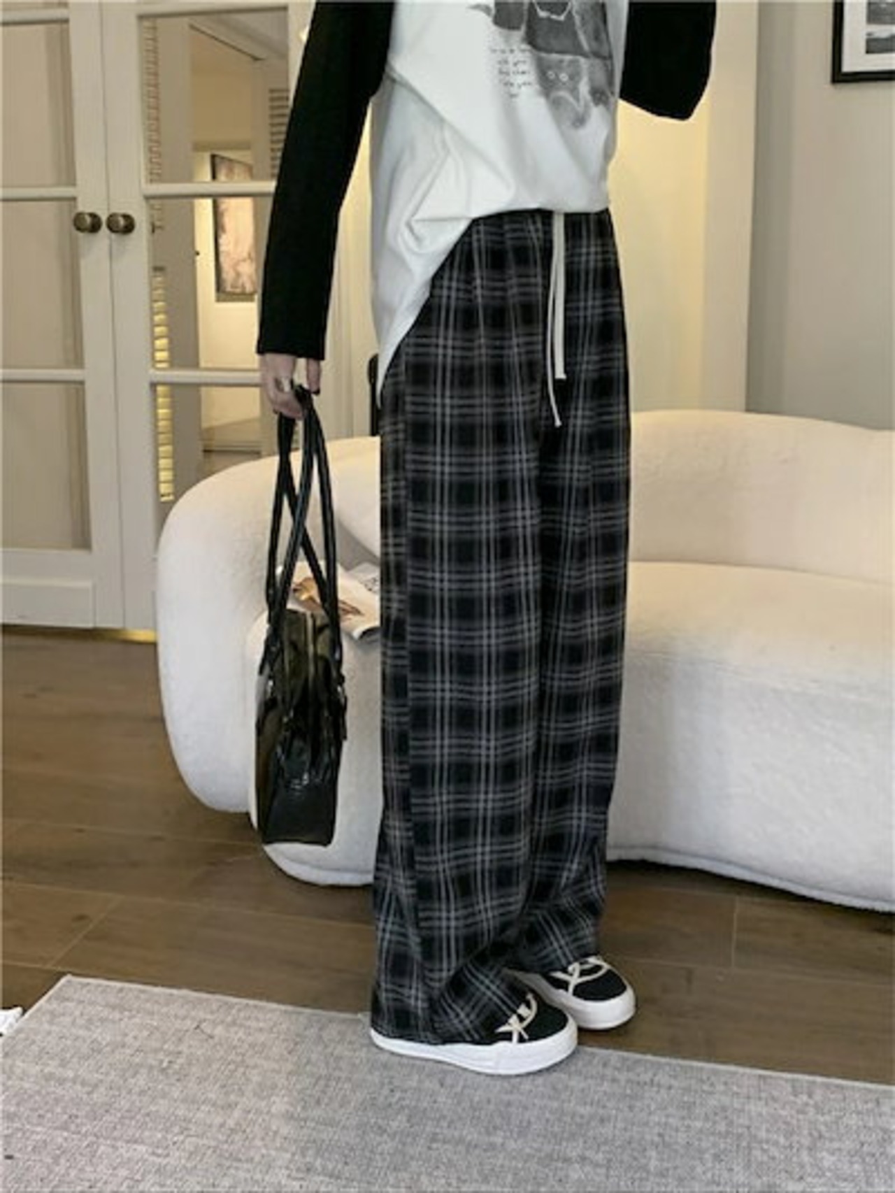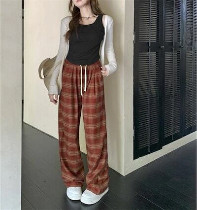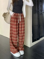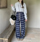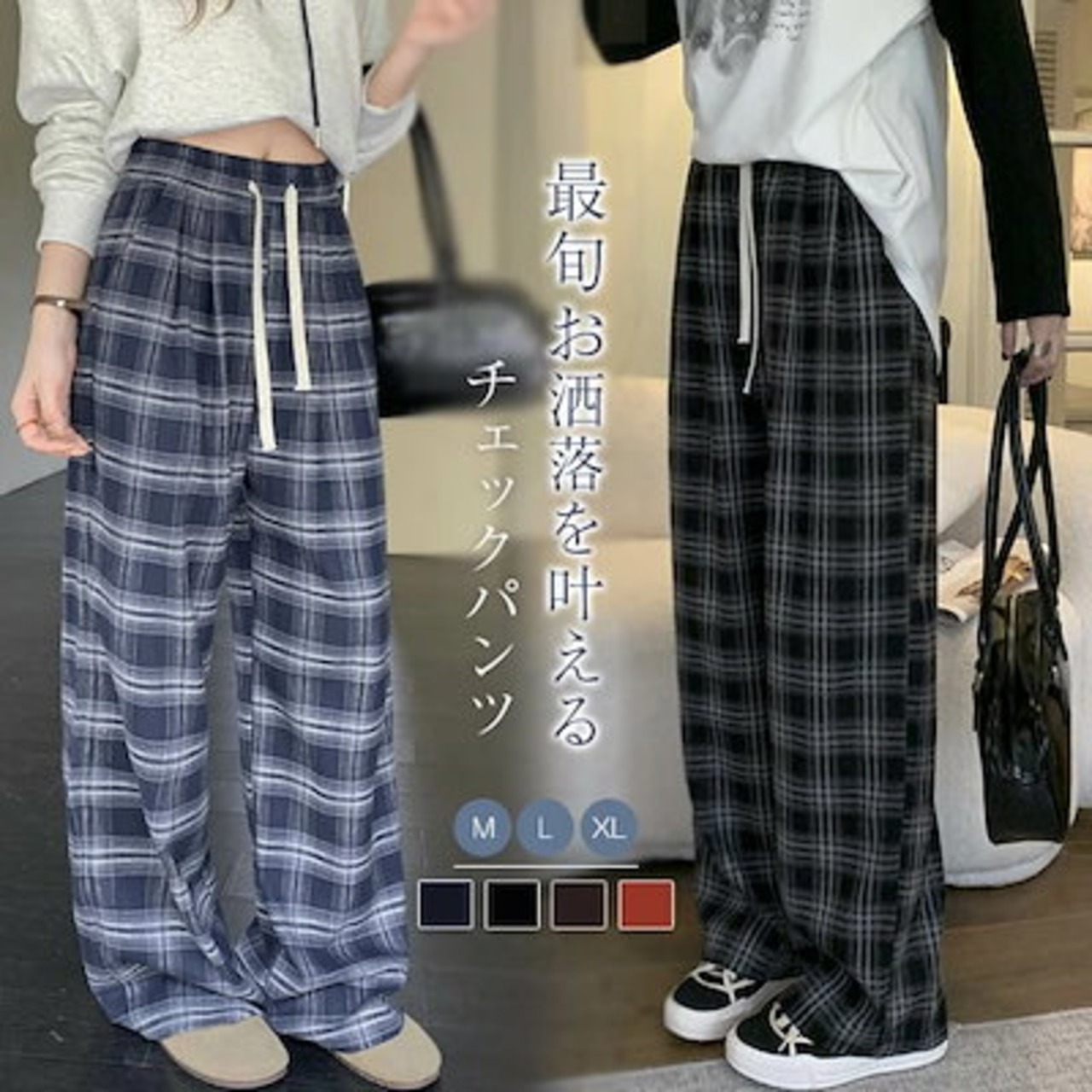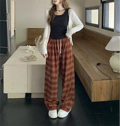 チェック パンツ 秋 ワイドパンツ レディース パンツ チェック柄 ロングパンツ ウエストゴム バギーパンツ 大きいサイズ ゆったり リラックス 着心地よい 柔らか ファッション オシャレ 通