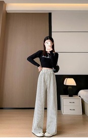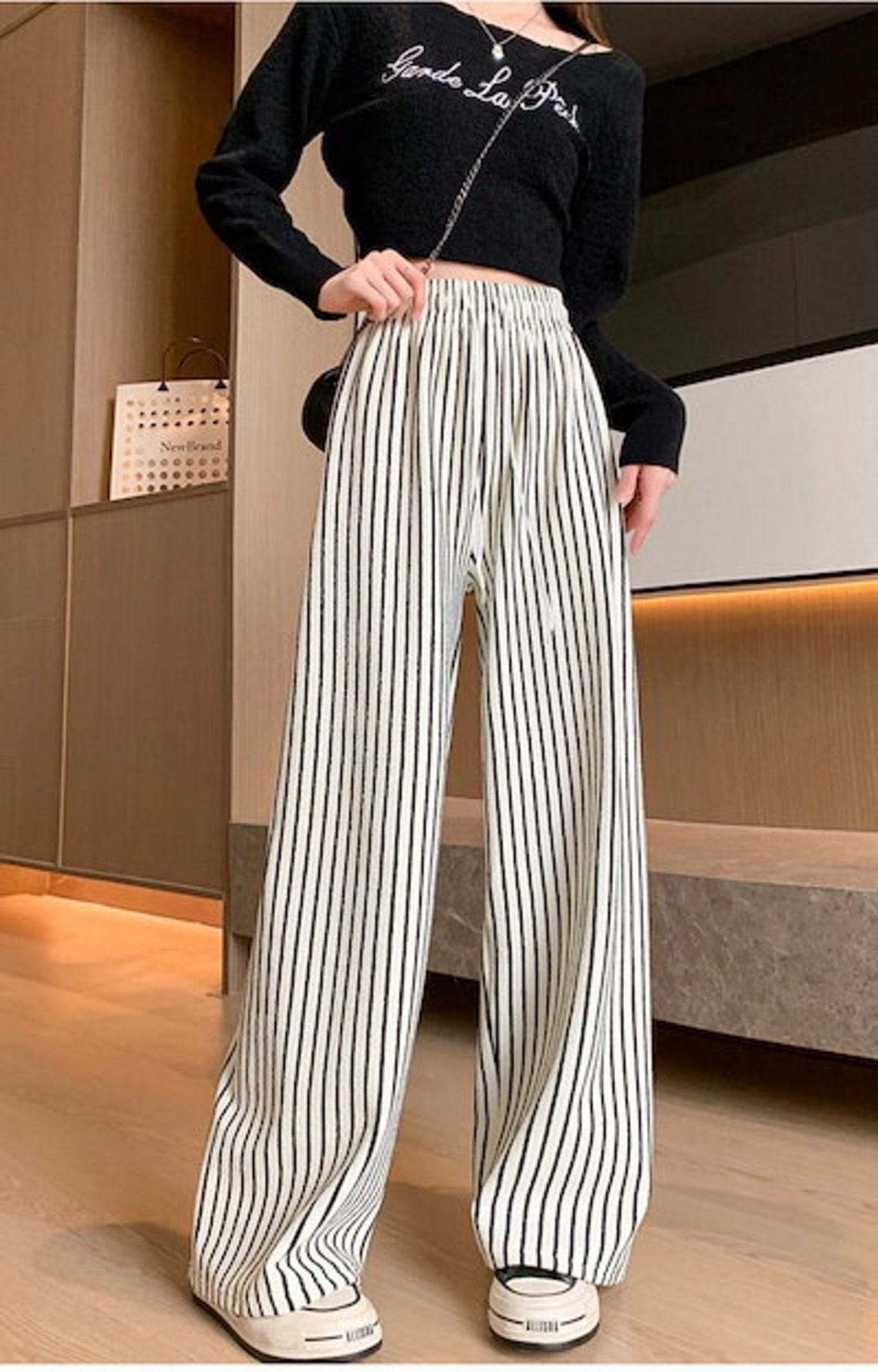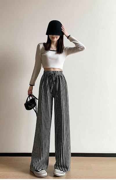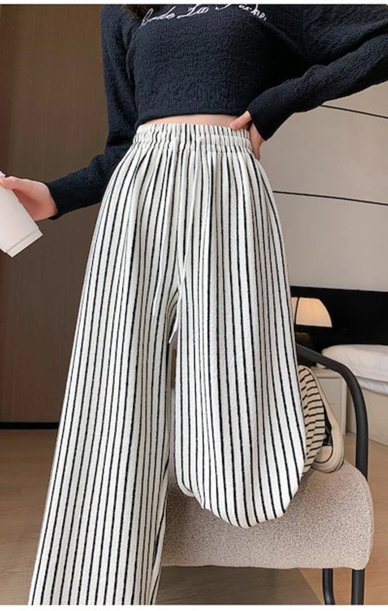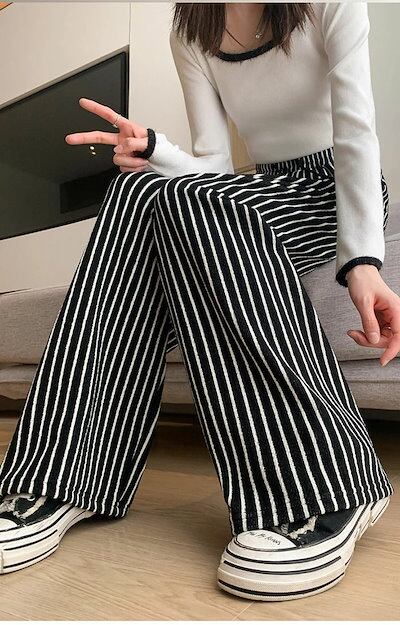 ワイドパンツ レディース ロングパンツ ストライプパンツ 春秋 タオル生地 パンツ ワイド ロング丈 パイル地 ウエストゴム ズボン 大きいサイズ 体型カバー ゆったり カジュアル きれいめ 厚手 着
