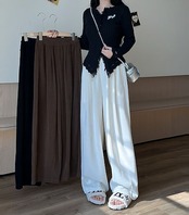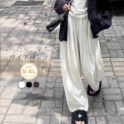 ワイドパンツ レディース タックパンツ 秋冬 ロングパンツ 無地 ウエストゴム イージーパンツ ハイウエスト ボトムス ゆったり 体型カバー 着?せ 大きいサイズ オシャレ カジュアル カジュアル シ