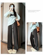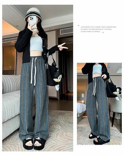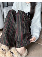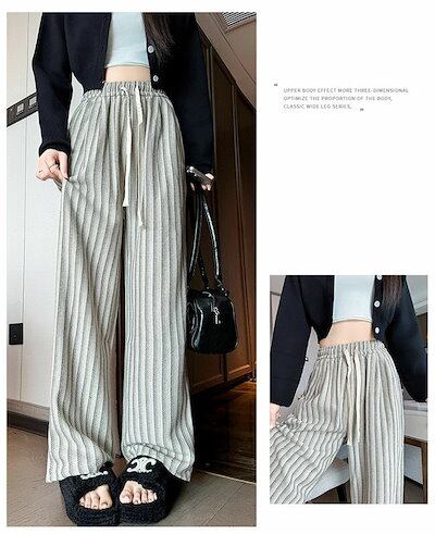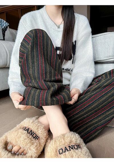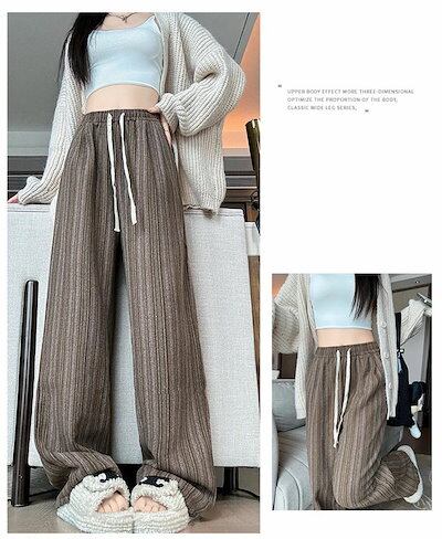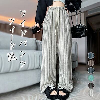 ワイドパンツ 春秋 ストライプ ストレートパンツ レディース ツイード調 イージーパンツ ストライプパンツ ロングパンツ 配色 ボトムス ウエストゴム カジュアル 大人 かわいい おしゃれ シンプル
