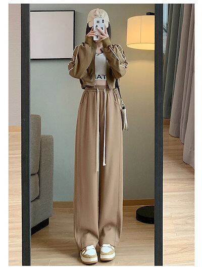 ワイドパンツ レディース ストレートパンツ 斜めリブ 無地 ウエストゴム イージーパンツ スウェットパンツ ゆったり ズボン 体型カバー 大きいサイズ ボトムス 着?せ オシャレ カジュアル シンプル
