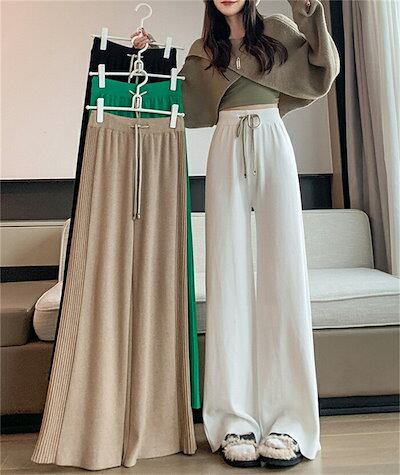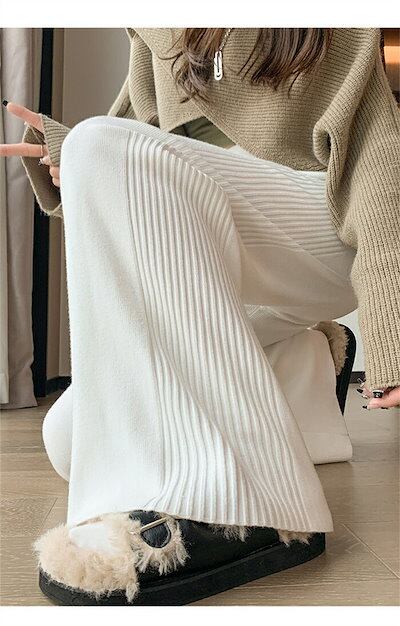 ワイドパンツ 秋冬 ニットパンツ レディース ニット ロングパンツ ウエストゴム 美脚 リラックス 暖い カジュアル ボトムス ニットパンツ バギーパンツ イージーパンツ ゆったり カジュアル