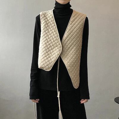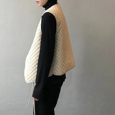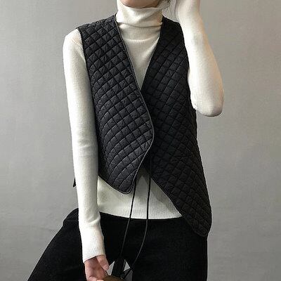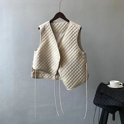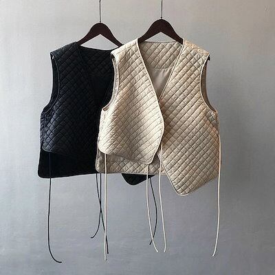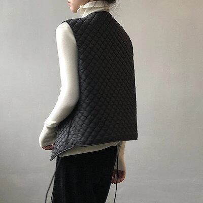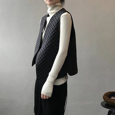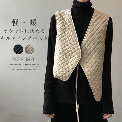 ベスト レディース キルティングベスト 中綿ベスト 秋冬 ライトアウター トップス 秋 冬 暖か 前開き ノースリーブ ノーカラー 羽織 重ね着 ゆったり 厚手 防寒 ベーシック カジュアル オシャレ
