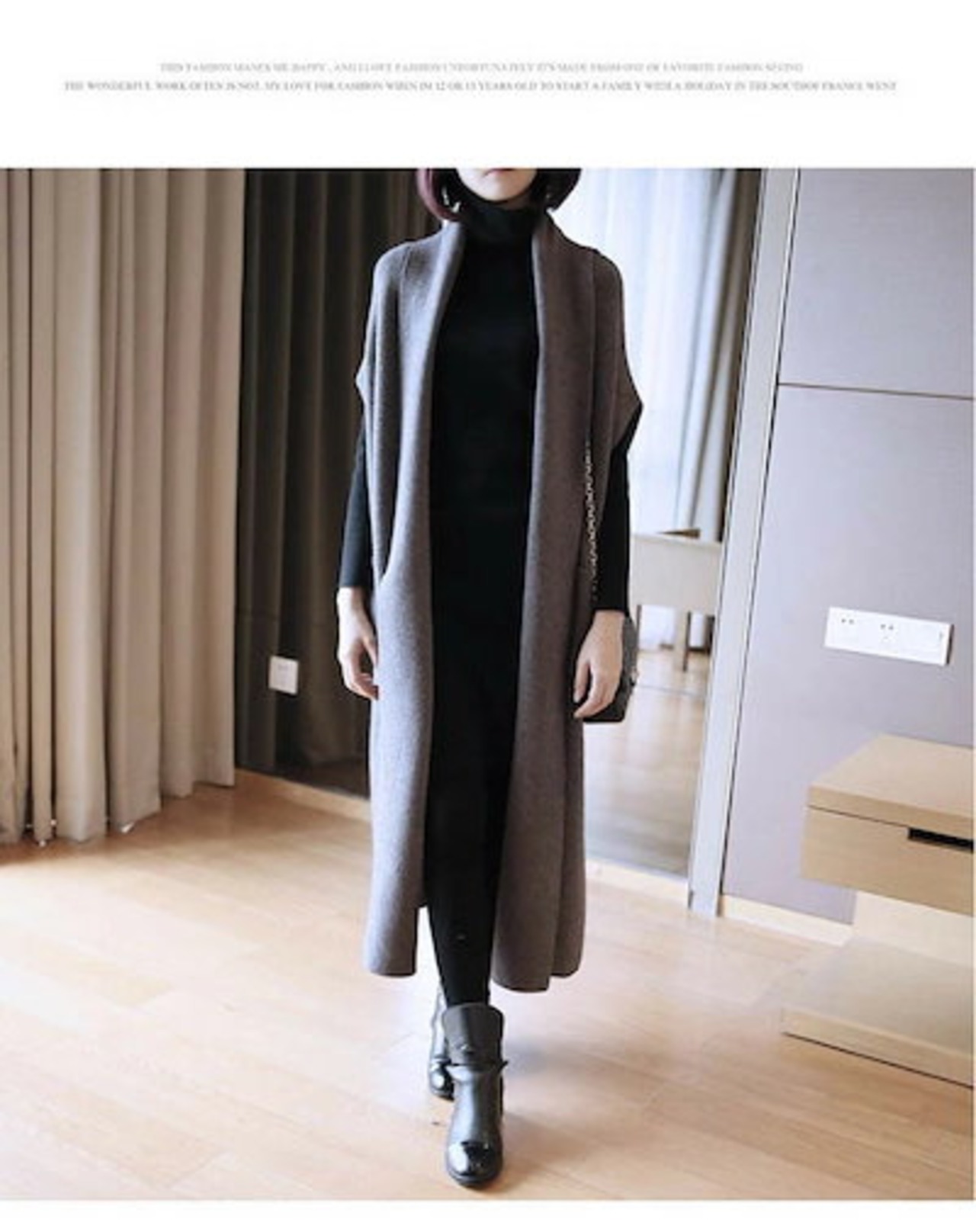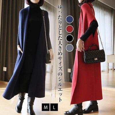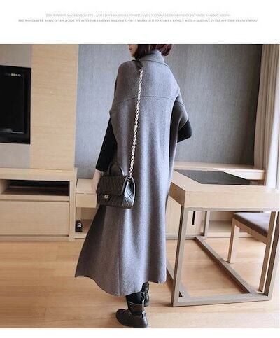 ロングジレ ベスト レディース マキシ丈 ノースリーブ ニットカーディガン ニットベスト ニットジレ ニットコート ロング丈 暖かい ロングベスト ロングジレ ニット おしゃれ チャコールグレー
