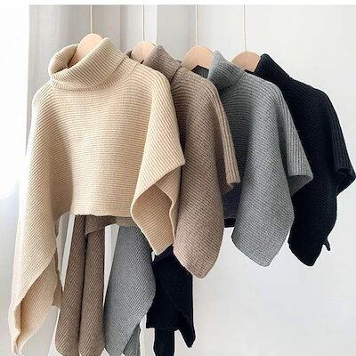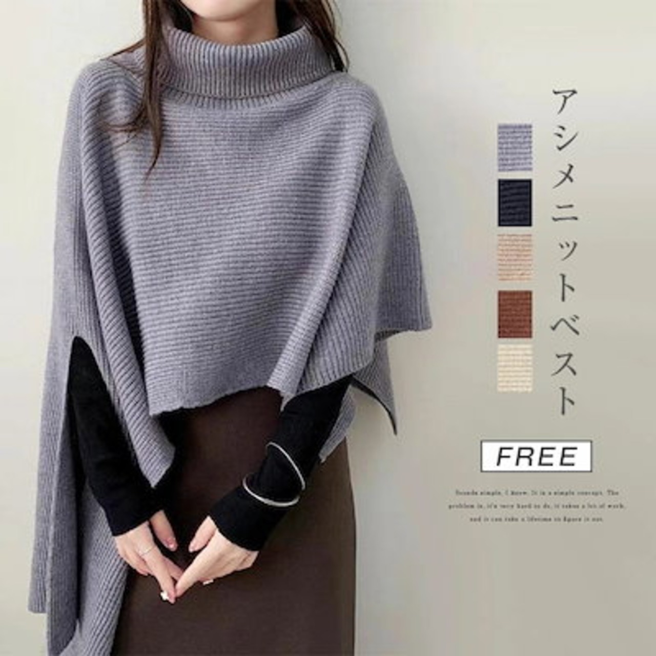 ニット ベストアシンメトリー レディース アシメニットベスト タートルネック トップス ノースリーブ ハイネック アシメ ケープ 重ね着 レイヤード モード デザイン カジュアル おしゃれ 大人可愛い