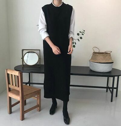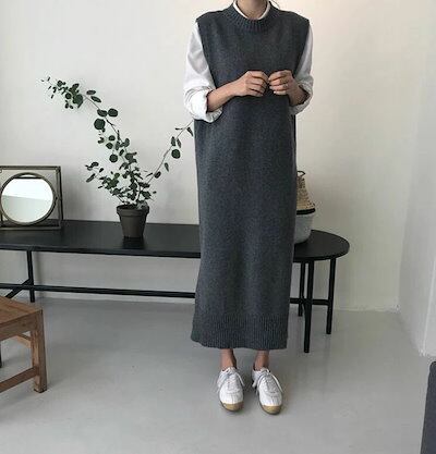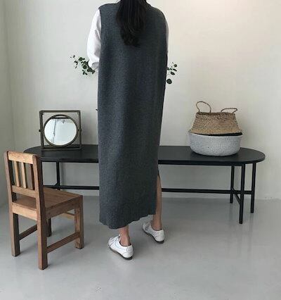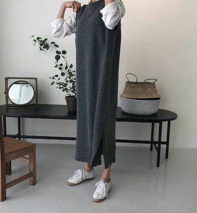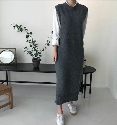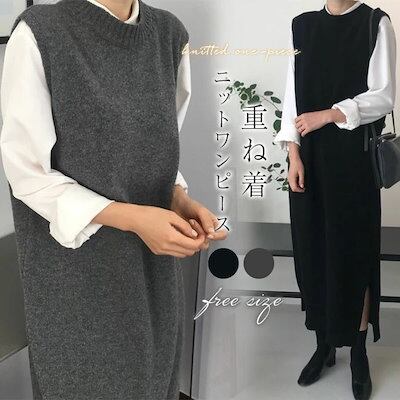 ロングニットベスト レディース 秋 冬 ワンピース ベスト Vネック ニットワンピース ニットベスト きれいめ ロング ワンピ 無地 重ね着 大きいサイズ ニット ロングワンピース ミモレ ノースリー