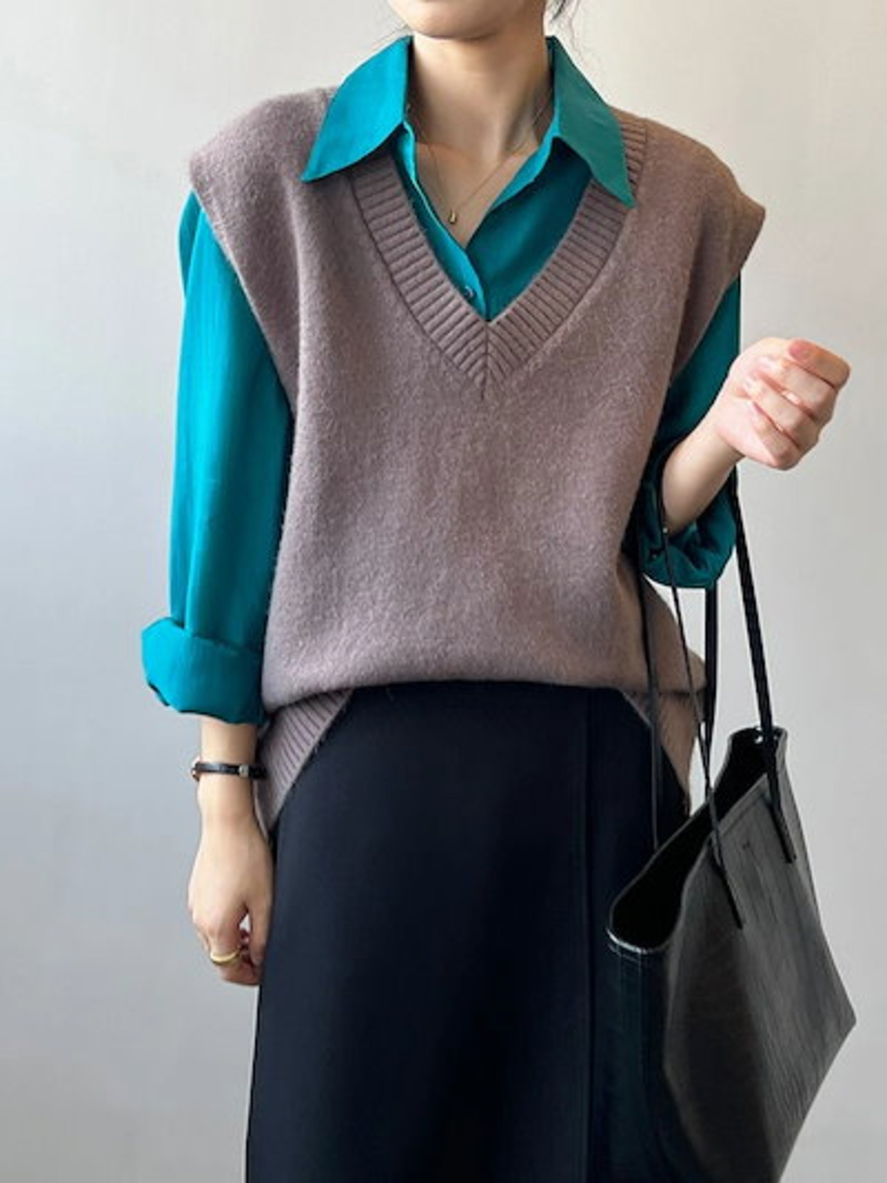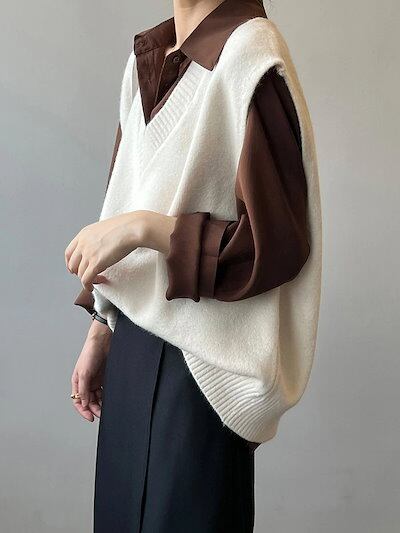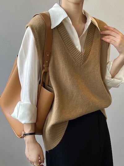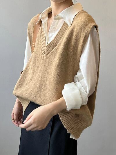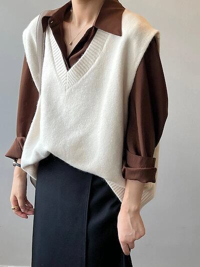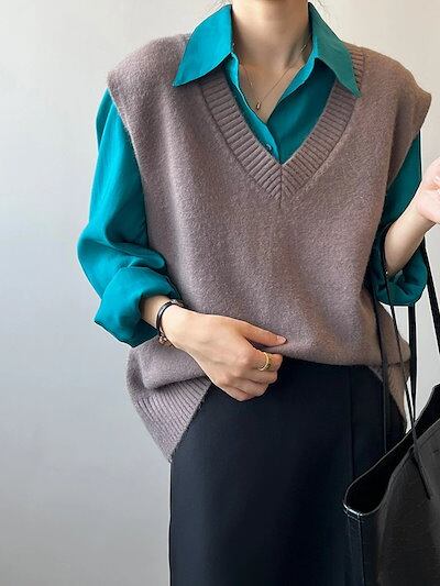 ニットベスト レディース 秋冬 上品 vネック トップス ニット ベスト キレイめ 重ね着 通学 通勤 大人 ノースリーブ 柔らかい 暖かい カジュアル シンプル モード お洒落 きれいめ ゆったり