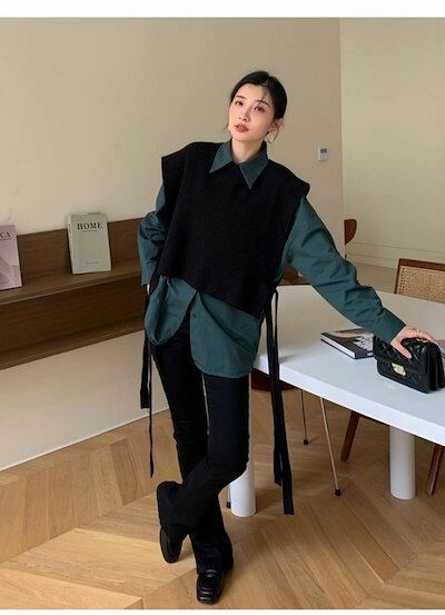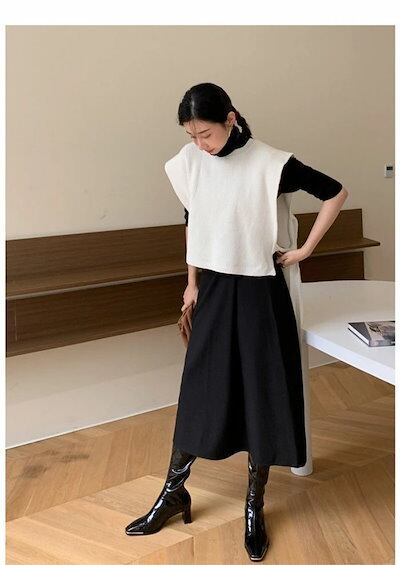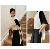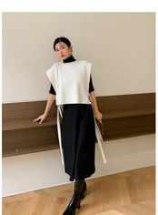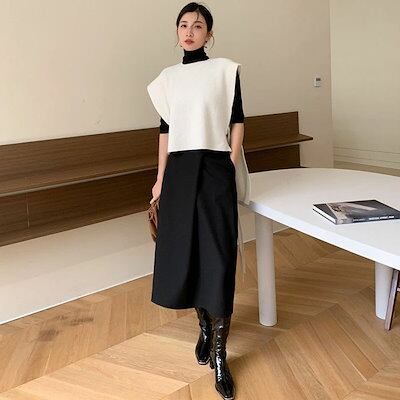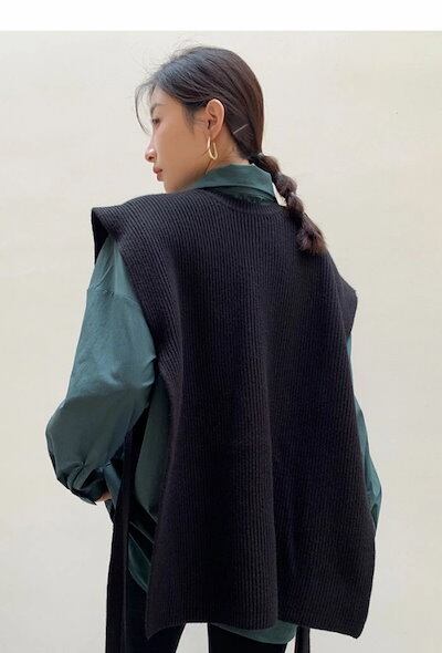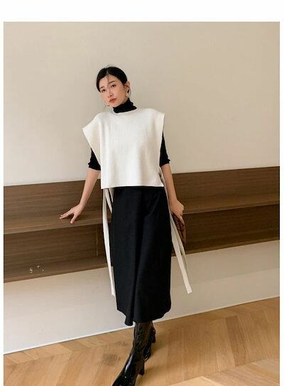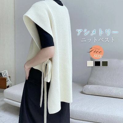 アシメニットベスト ベスト レディース ニット アシンメトリー ニット サイドリボン ケープ ノースリーブ トップス アシメ セーター 重ね着 レイヤード モード 前後差 デザイン カジュアル おしゃ